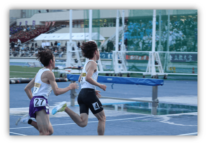 大学ではその悔しさを胸に、慶應義塾體育會競走部に入部しました。高校時代の故障を乗り越えながら練習を積み重ね、大学2年時には慶應大学記録(5000m)を2度更新することができました。