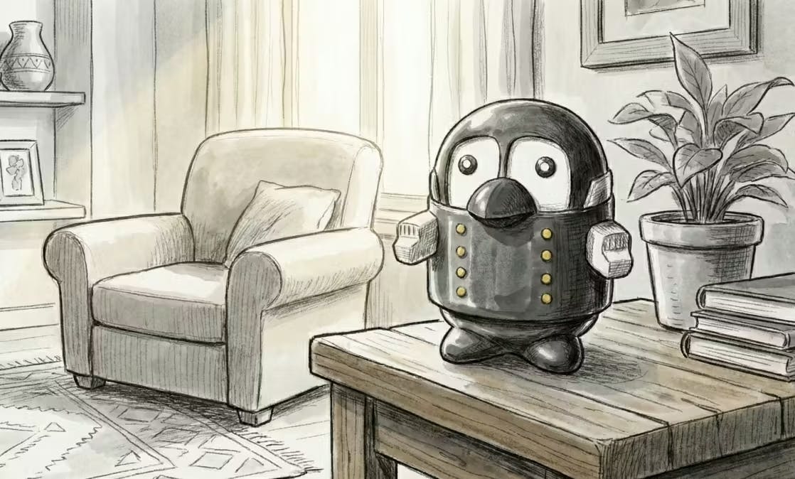 ぺるりんの再スタートを祝う、縁起の良いだるま石像です。