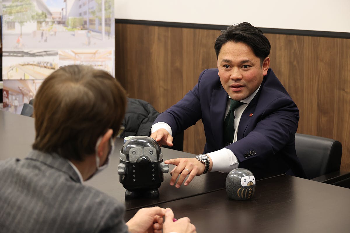 石像について熱く語る(有)山岸石材店代表の稲葉貴士さん