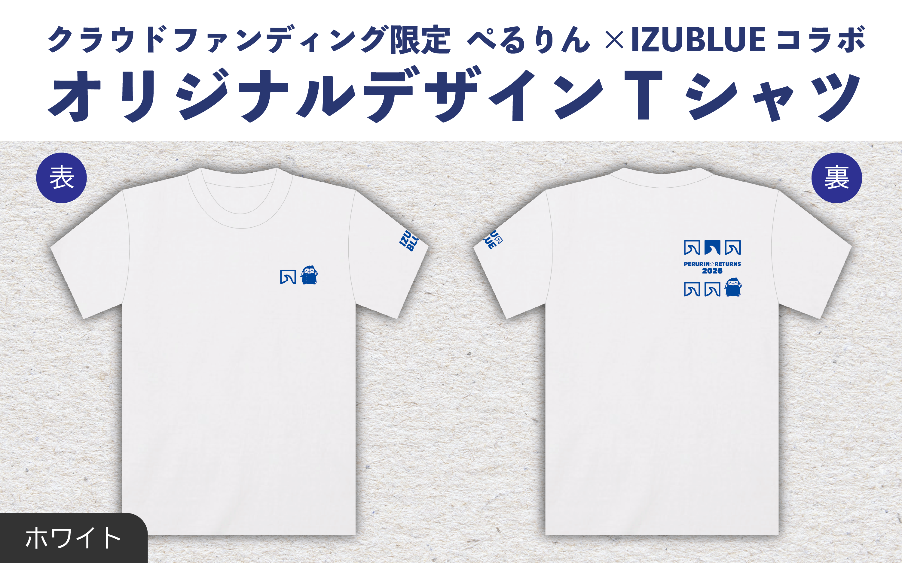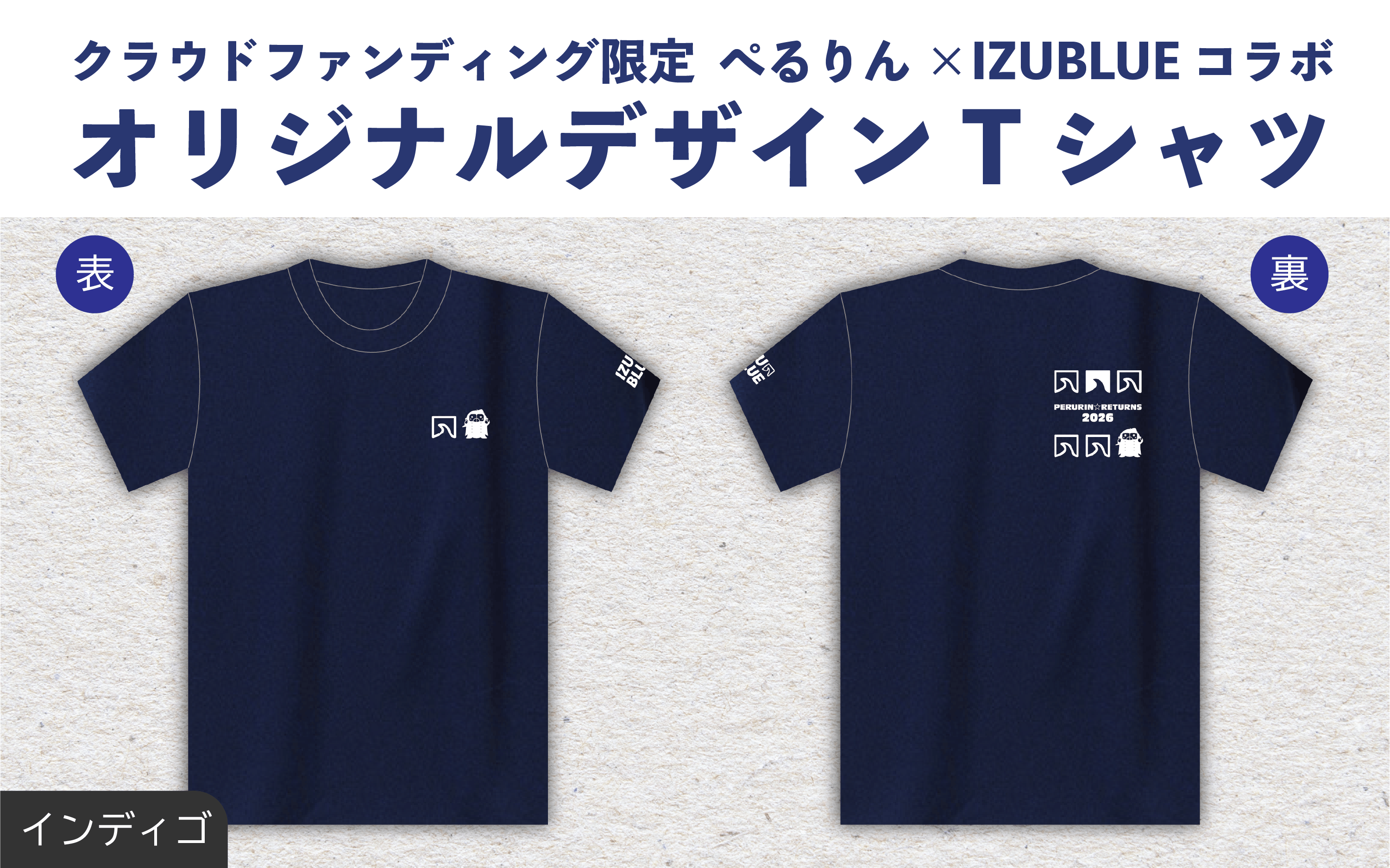 「ぺるりん×IZUBLUE」本クラウドファンディング限定のオリジナルデザインTシャツです。購入の際に、着用の方のサイズをご確認の上、選択をお願いします。