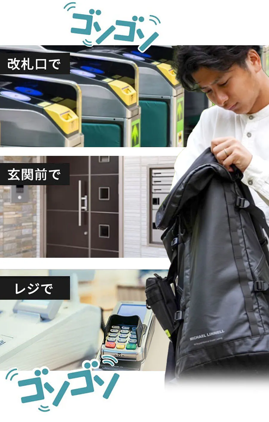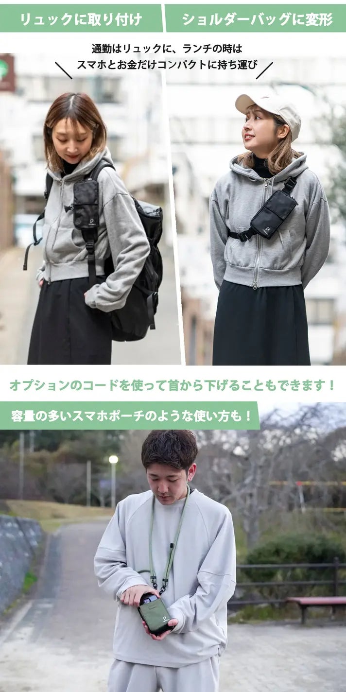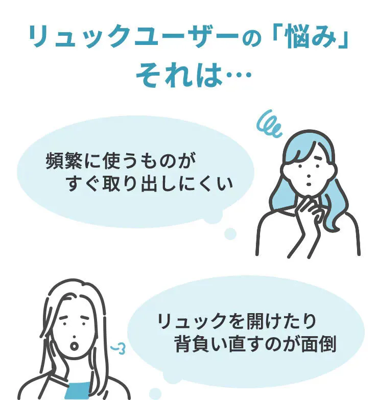 リュックを降ろさずに、財布やスマートフォン、定期など、よく使うものをもっとかんたんに出し入れできれば…