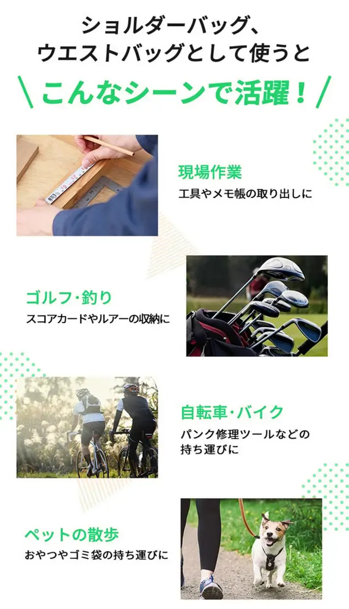 ・付属品:ショルダーベルト・カラビナ・カラビナ用ベルト