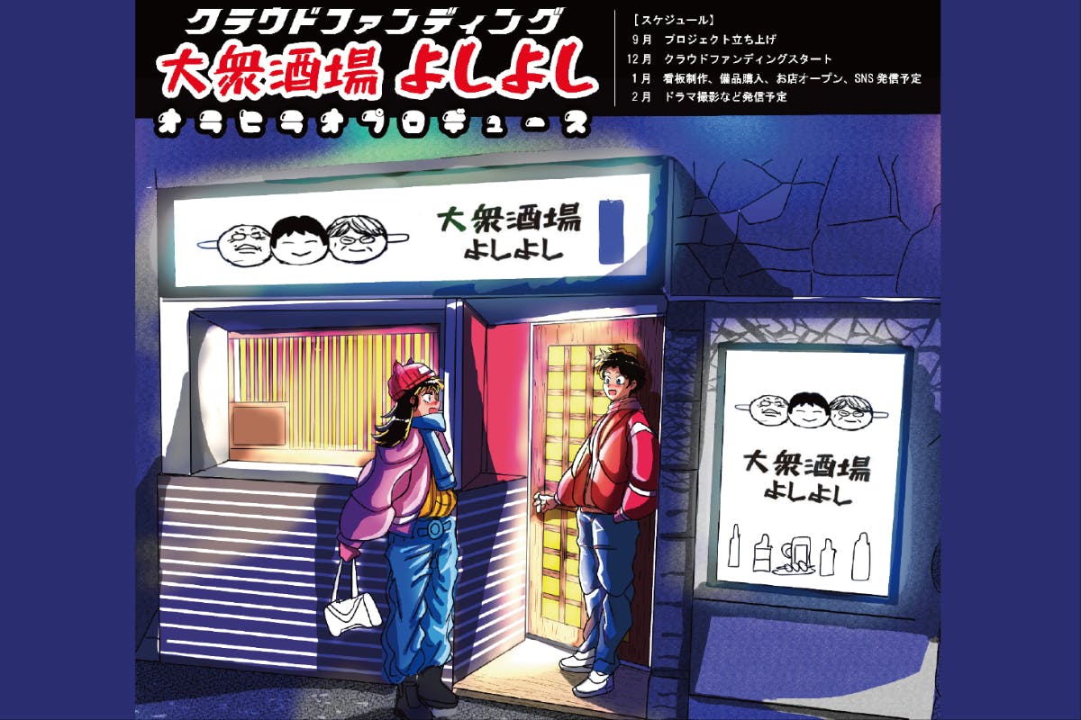 イラストレーター・デザイナーの おらひらお です。これまでの活動を通じて、創作の楽しさを多くの人と分かち合ってきました。そして今回、お店のオーナー、映画会社の3体制でと使われなくなった居酒屋を、世代を超えて人々が集い、創造性を育む「新しいコミュニティスペース」へと生まれ変わらせます。この場所は、クリエイターや表現者のための撮影・貸出専用スペースであると同時に、地域のシニア世代が交流できる温かいコミュニティの拠点となり、さらには若い才能を育む社会教育の場にもなります。