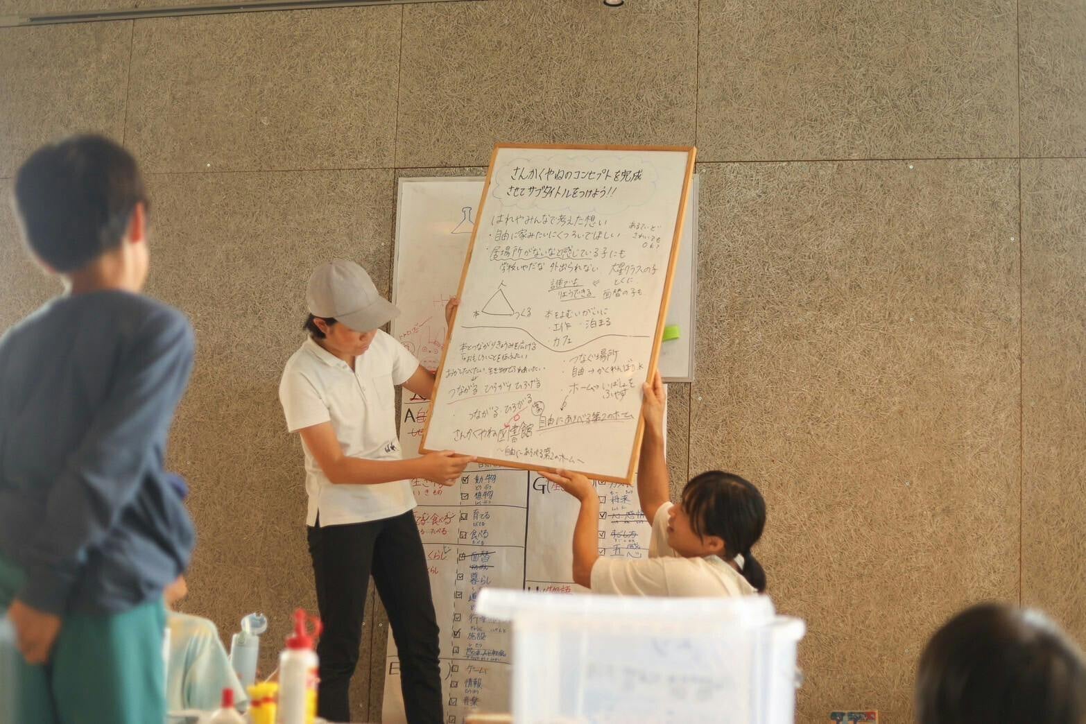 また、大学生と子どもたちが一緒に「さんかくやね図書館」のコンセプトも考えました。