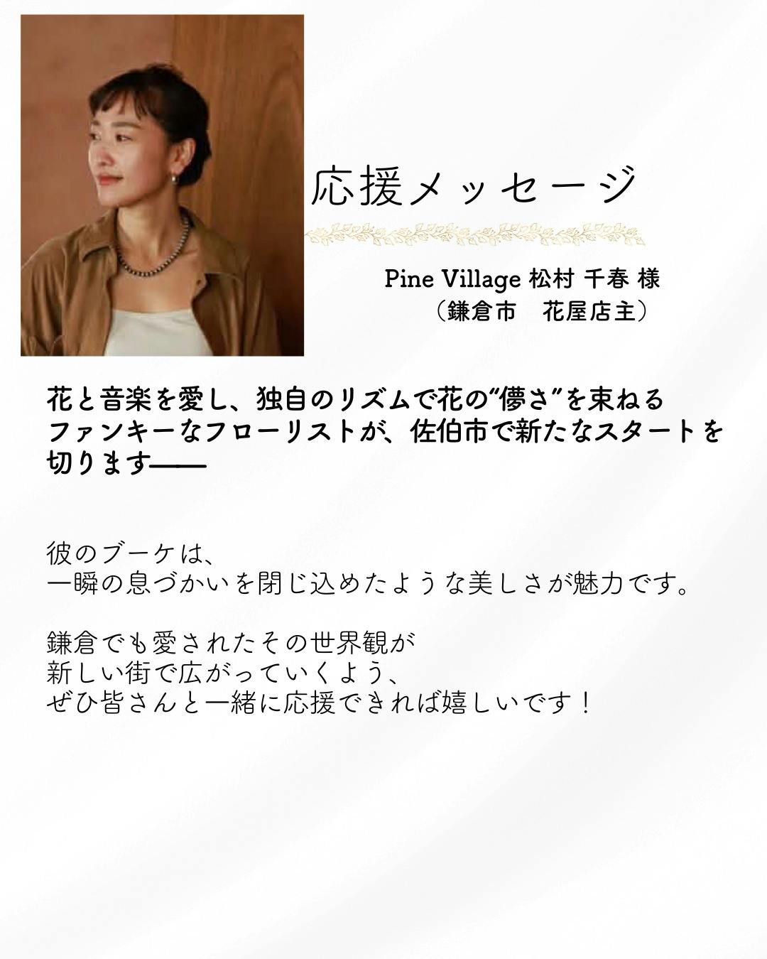 応援メッセージ|Pine Village松村千春様(鎌倉市 花屋店主)