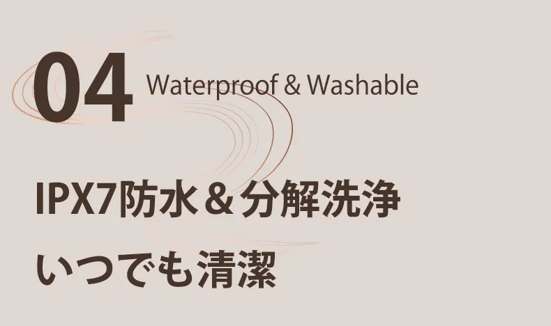 さらにIPX7防水仕様で、本体まるごと丸洗いが可能。常に衛生的で気持ちよく使えます。