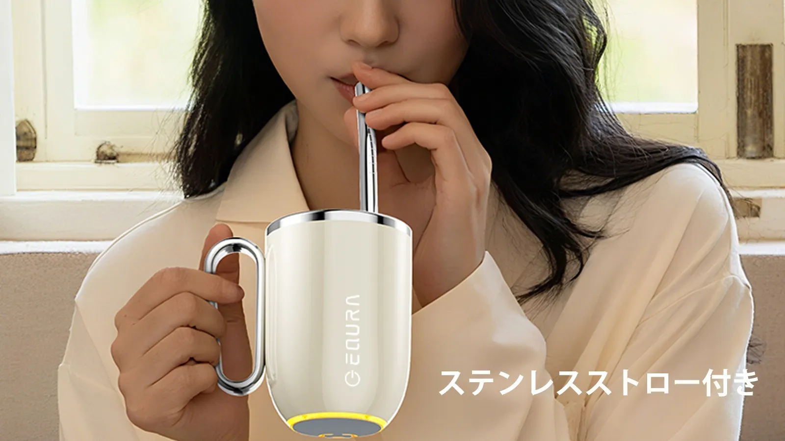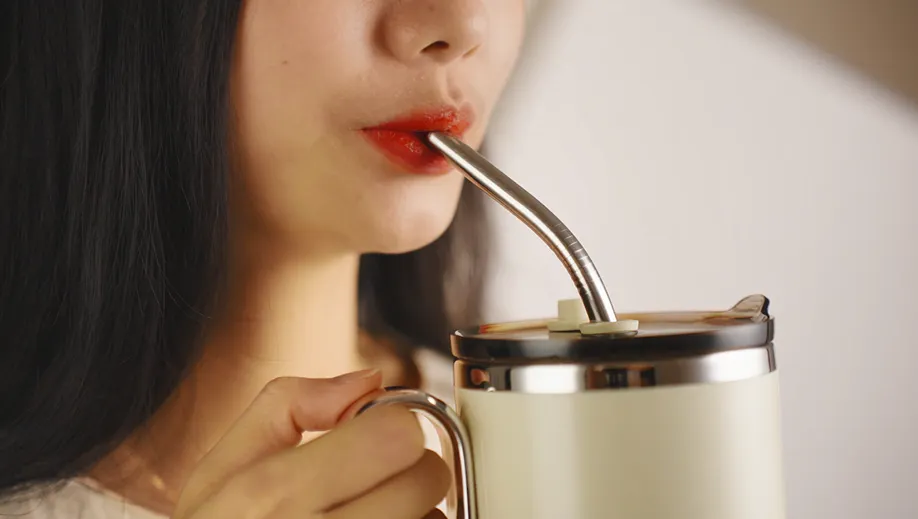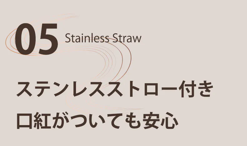 口紅をしていても気にならない、衛生的で丈夫な304ステンレス製ストローをセット。女性も安心して使えます。