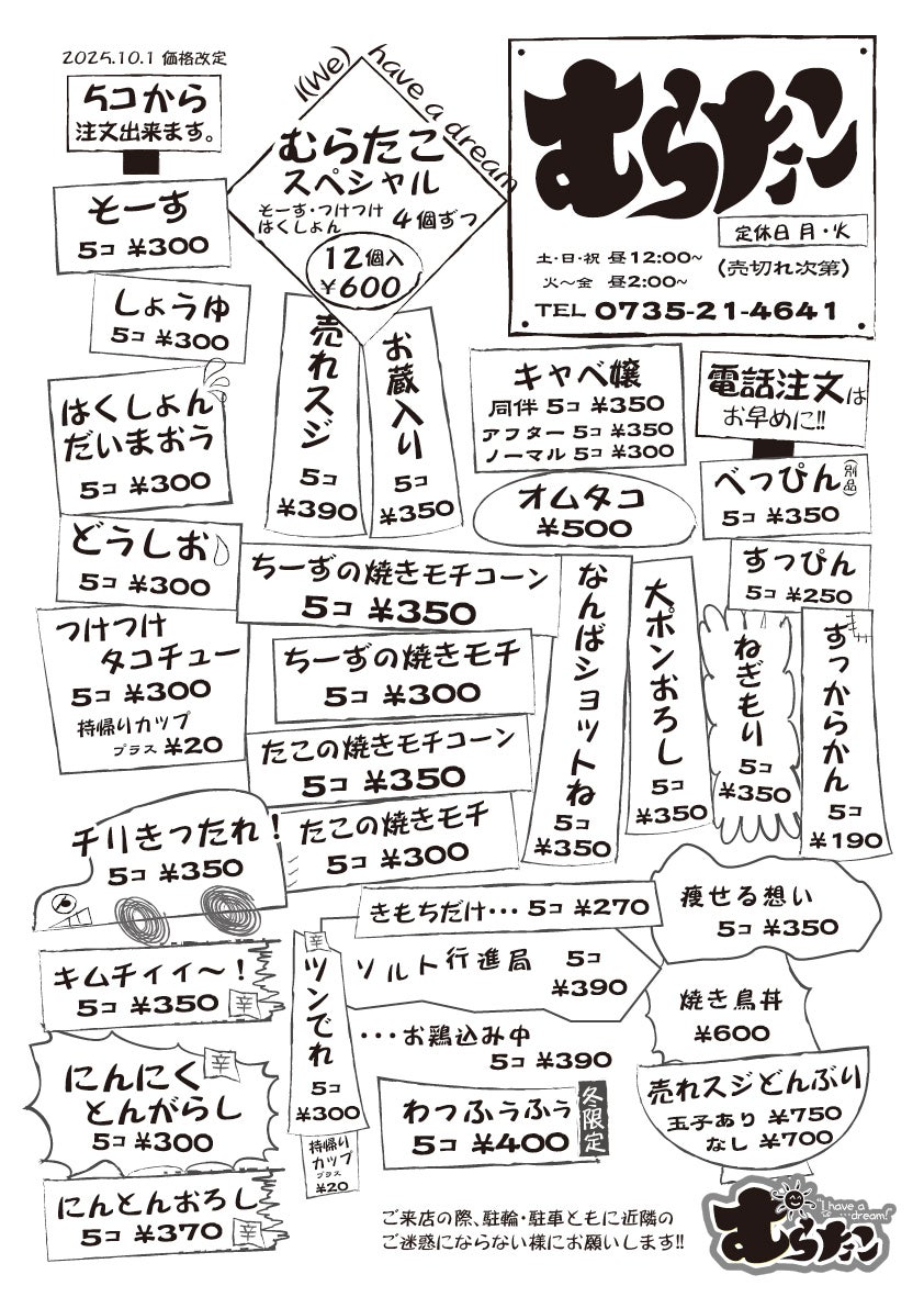 【むらたこ】は、ただのたこ焼き屋ではありません。地域の人々の心を支え、思い出を刻み続けてきた大切な場所です。店主の精神的な不安を解消し、安心して営業を続けていただくためにも、皆さまの温かいご支援をお願いいたします。