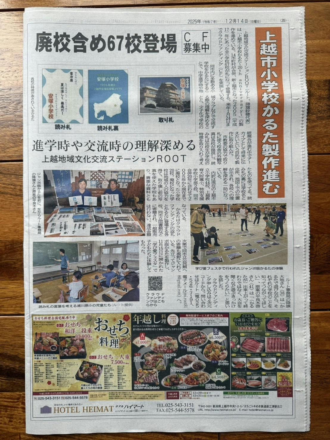 本日の上越タイムスで、わたしたちのプロジェクトを取り上げて頂きました!