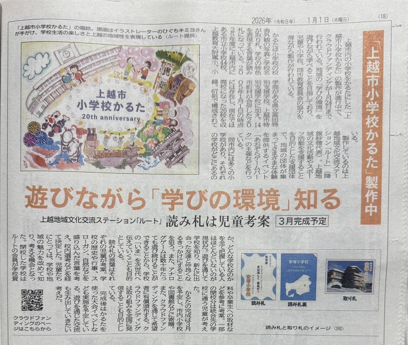 さて、1月1日の上越タイムスで、わたしたちのプロジェクトを取り上げて頂きました!