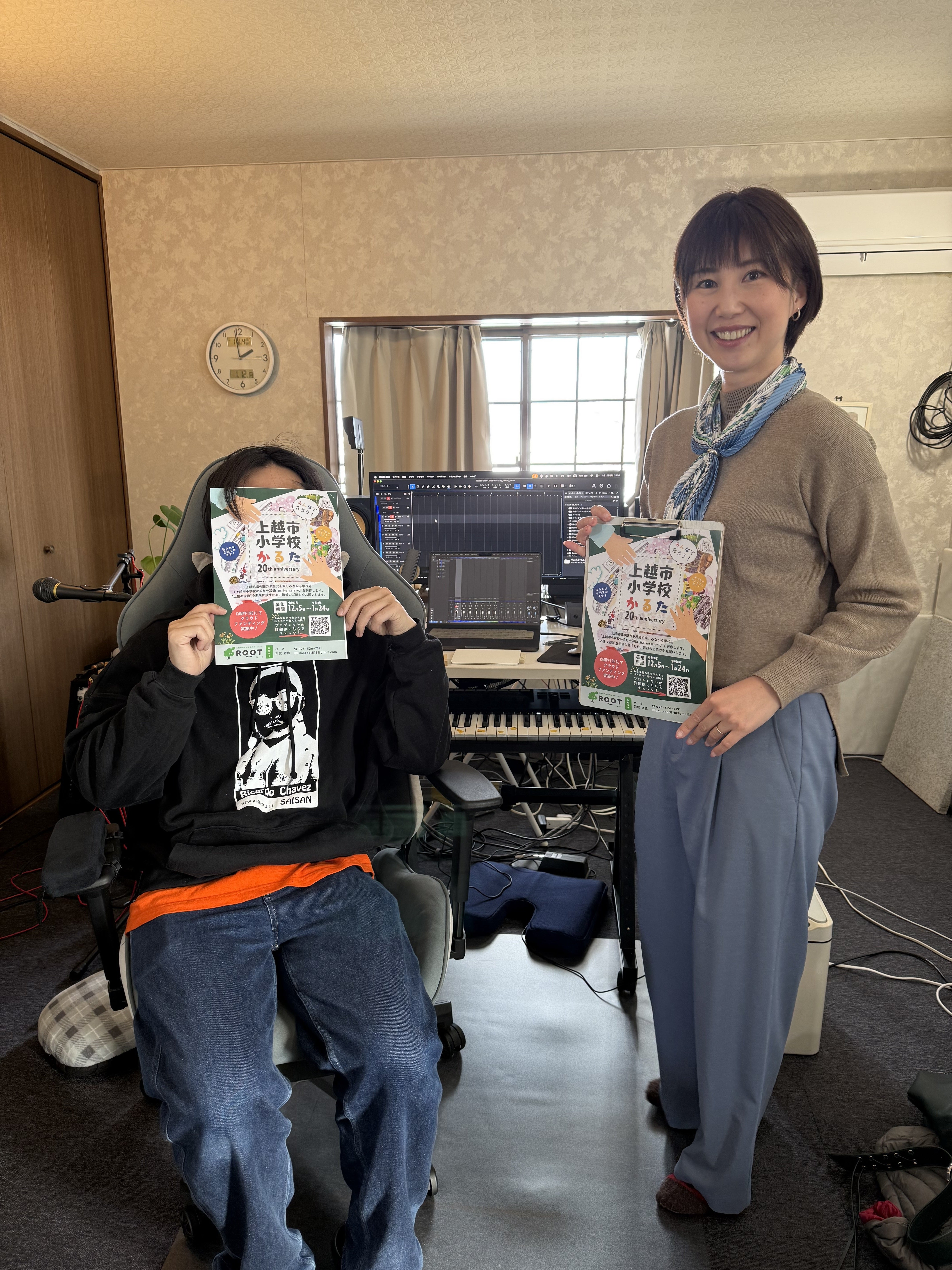 レコーディング作業は、上越市で活躍されている音楽家のKiwyさんに依頼しました。