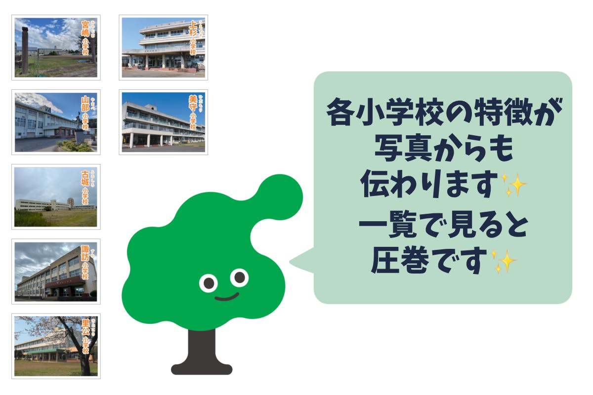 各小学校の特徴が写真からも伝わります✨一覧で見ると圧巻です✨