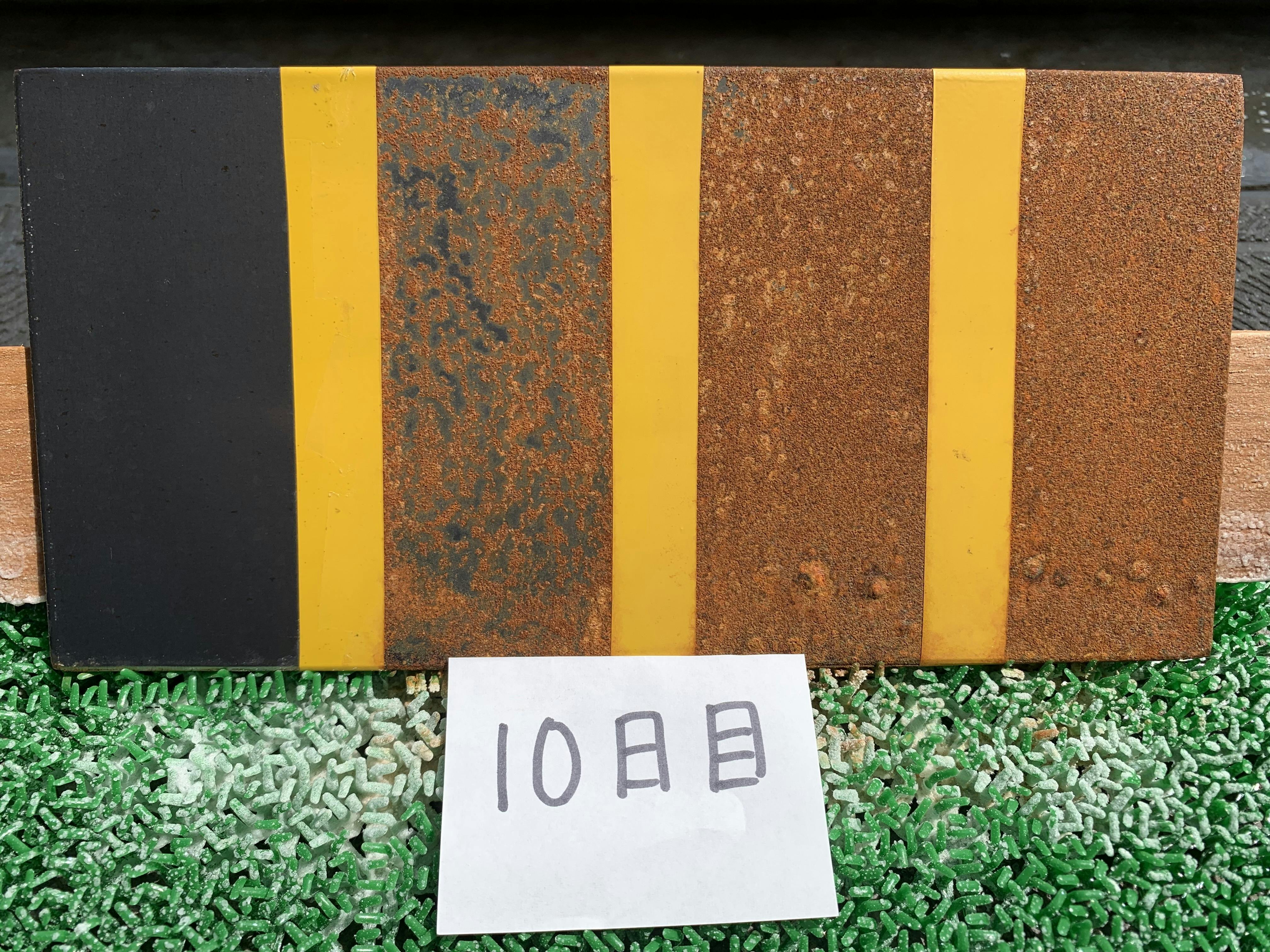 A. 海水の8倍濃度の塩水でも4か月間防錆が確認されています。塩害・凍結防止剤による錆にも非常に強いです。