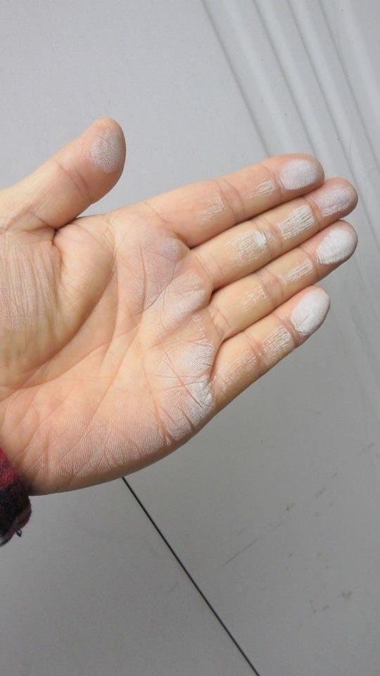 「この写真のように、ガードレールや外壁を触ったときに、手が白くなった経験……皆さんも一度はありませんか?