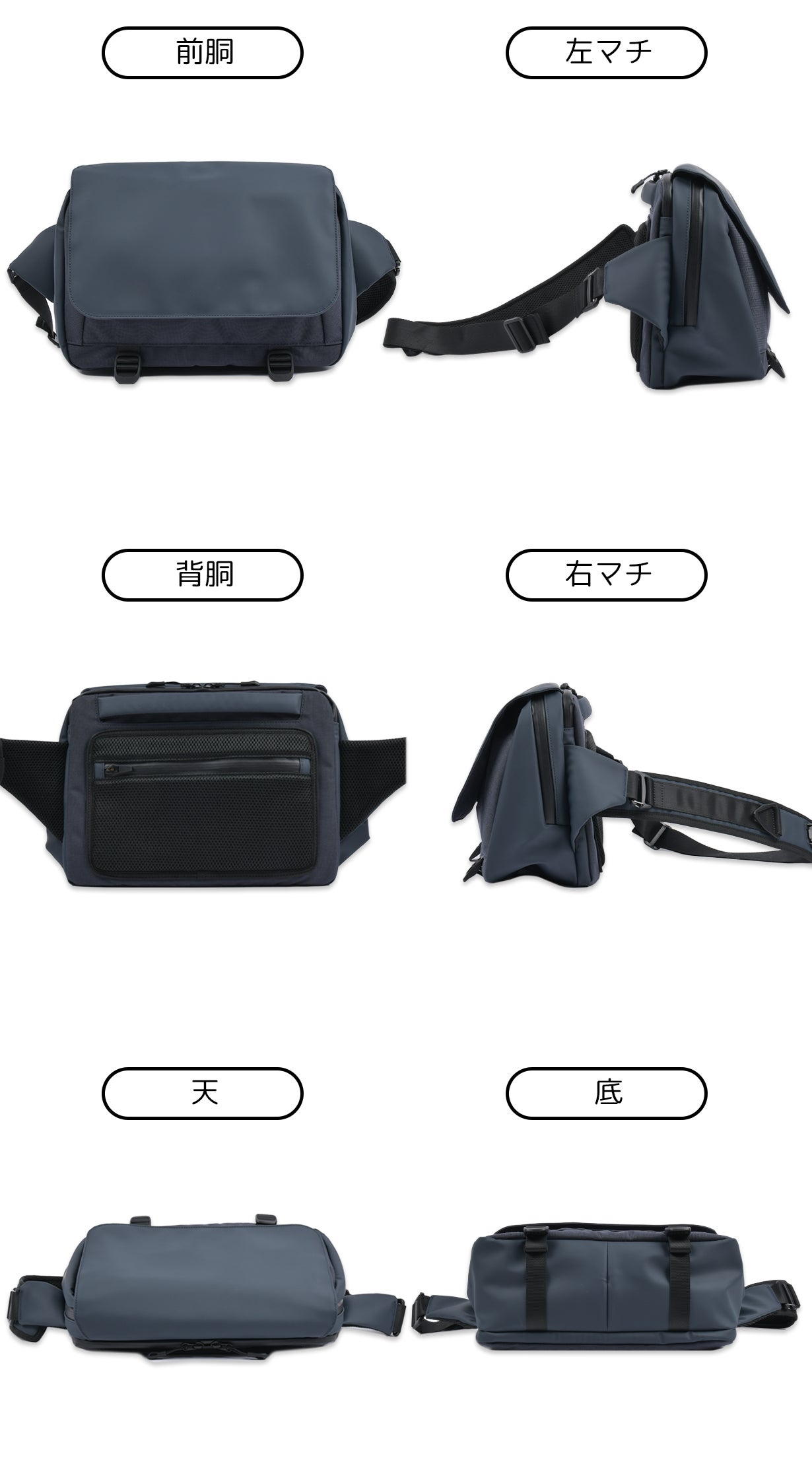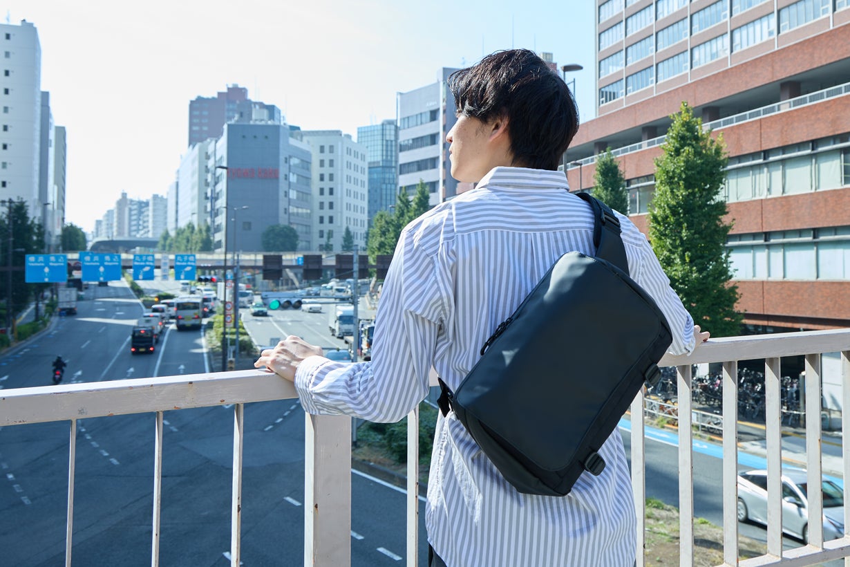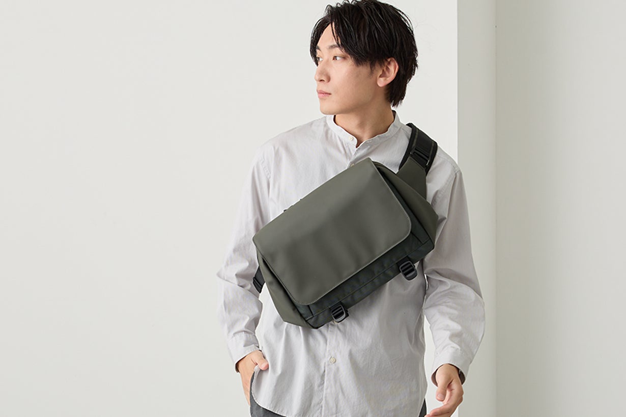 PC対応でさらに進化した傷に強く汚れても簡単に綺麗になる。大人の日常使いに最適なスリングバッグ。