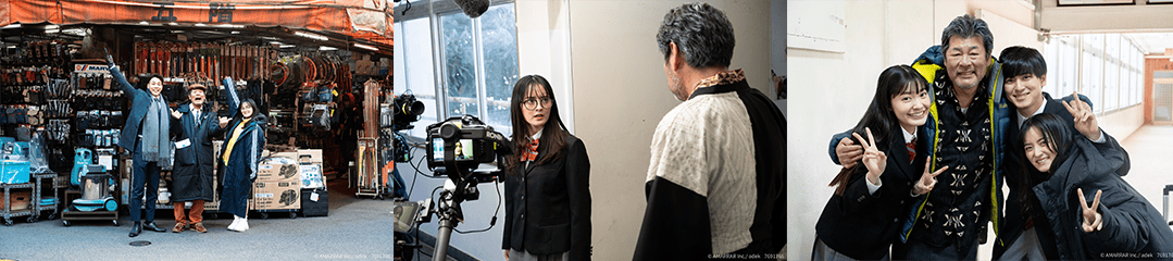 物語の舞台は2023年の大阪。ロケ地である大阪市浪速区と泉大津市の商店街や企業の皆様に多大なるご協力をいただき、撮影を行いました。