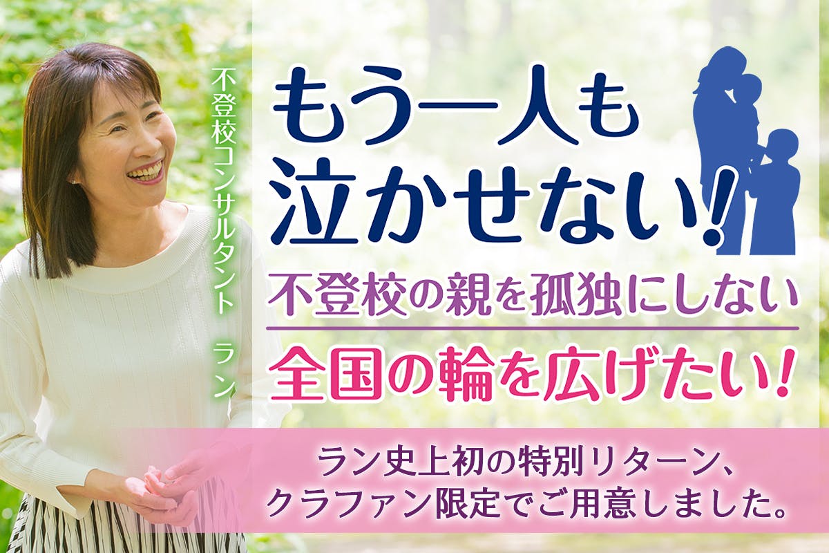 2026/01/24 21:06こんにちは!ランです。このたび、クラウドファンディングが無事に終了しました。目標金額300万円に対して、5,878,029円。達成率は、195%。正直、まだ信じられません。本当に、ミラクルが起きました。今回、初めてクラファンをやって感じたことは、 ”一人じゃなかったんだ”と、いうことです。 私は、この2、3年全国にいる不登校のママパパを支援している人をつないでサポートできたらな〜と思っていました。なぜなら、不登校のママパパを支える人が増えると不登校の親の居場所がリアルで全国にできるから。そして、2冊目の本の出版を機にクラウドファンディングをして「全国の不登校の親を孤独にしないプロジェクト」をスタートさせる決心をしました。 クラファンの手続きをいろいろやってクラファンがどういうものかわかってきたとき、実は、すごく怖くなりました。 なぜなら、例えば、本の配送もイベント会場の段取りも全部、全部、自分でしないといけないって思っていなかったから(笑) そして、支援していただいた方へのリターン商品も当たり前ですが、チャリティーで自分で全部しないといけないし、 クラファンをやるイコールこんなにたくさんの作業量があるなんて想像していませんでした。 そして、「支援金を得る」このことについてもみんなからどう思われるだろうとか実際、やる段階になってくるとじわじわ恐怖に変わってくるのです。 でも、そんな思いを言ったら「手伝いますよ」とか、 「ランさん、応援しますよ」など、言ってくださる方がたくさんいたんです。 そして、クラファンが始まると、「ランさんにお礼がずっとしたかった」「ブログや本で助けられました」「恩返しができるので クラファンをやってくださって ありがとうございます」など予想していなかった言葉をたくさんいただいたのです。本当に感動しました。そして、今回リターンとしてあげた「全国の不登校の親の会メンバーシップ」には最終的に38人も参加してくださいました。 私って1人じゃないんだ。。。私1人で頑張らなくてもいいんだ。。。全国に笑顔の輪を広げたい、そう思ってくれる人がこんなにもいるんだ。そう思って胸が熱くなりました。 本当に、応援とご支援をありがとうございます。全国の不登校の親を孤独にしないプロジェクトはこれからです。 地道な活動になりますが、活動を報告してまいりますので暖かく見守って応援してください。 本当に皆様には感謝しかないです。本当にありがとうございました。 ラン もっと見る明日終了!ネクストゴールまであと3万円!