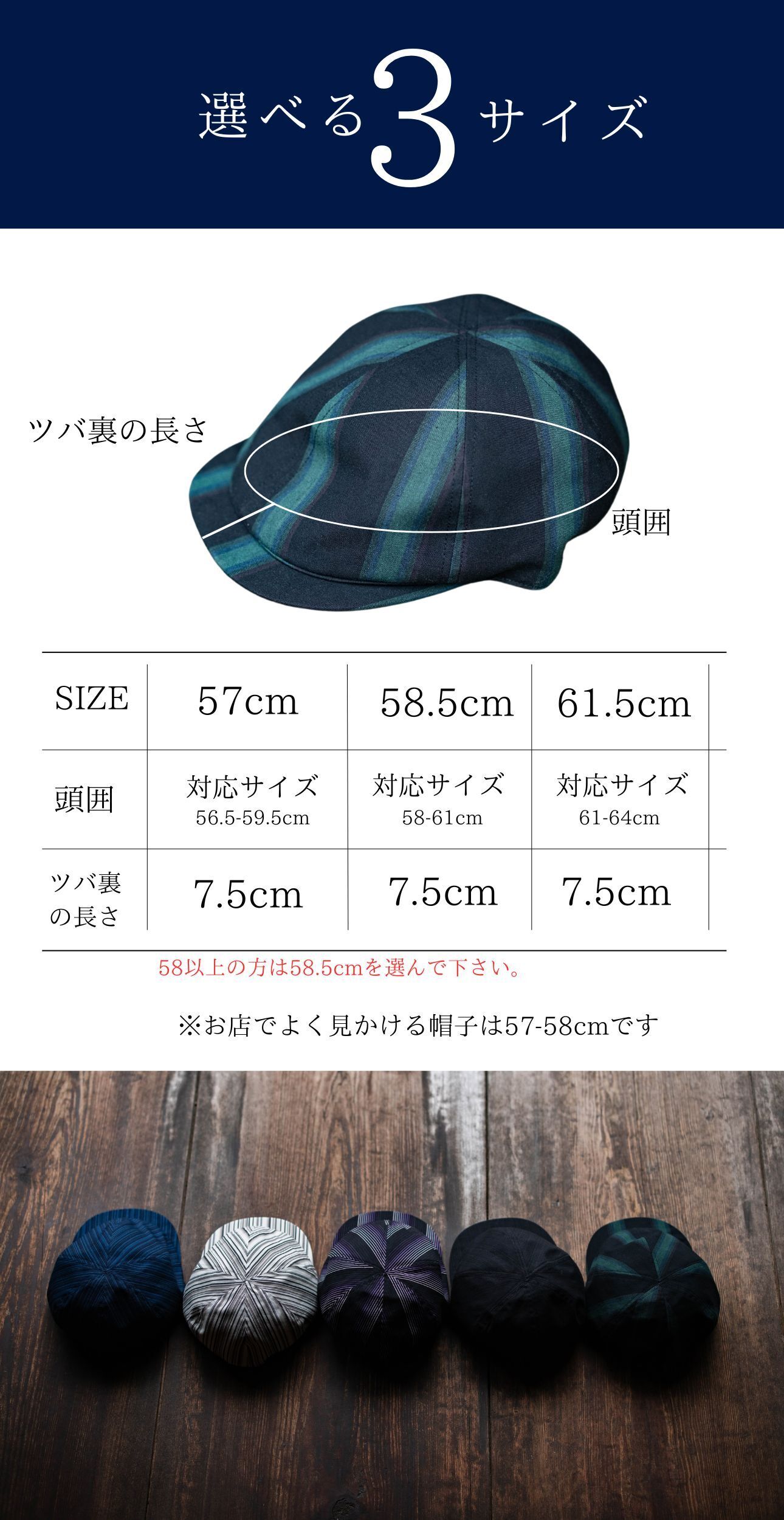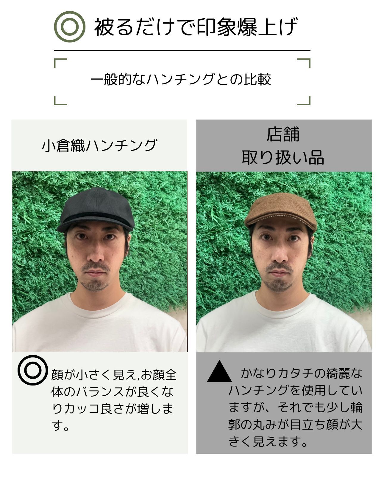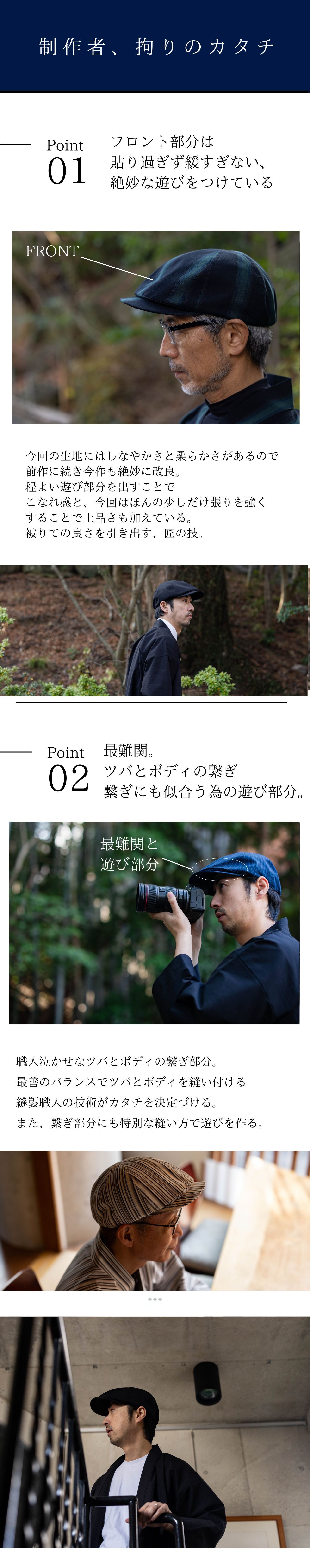 実店舗では、千点以上ある商品がある中で直接会話や試着をしながら、【似合う】をお届けできる商品はあっても、オンラインで【似合う】を届けることはとても難しく、オンラインでより多くのお客様に【新しい自分に出会う喜び】を届ける方法はないかと考えた結果、世にある多くはコーカソイドの骨格に合わせて作られた帽子が多く、日本人の骨格に合わせて開発された帽子はとても、少ないことに気づきましたので、日本人の頭のカタチを研究し、サイズ展開も普通、大きい、超大きいをつくることで、多くの悩める人に喜んでもらえるのではないかと思い今作を開発いたしました。