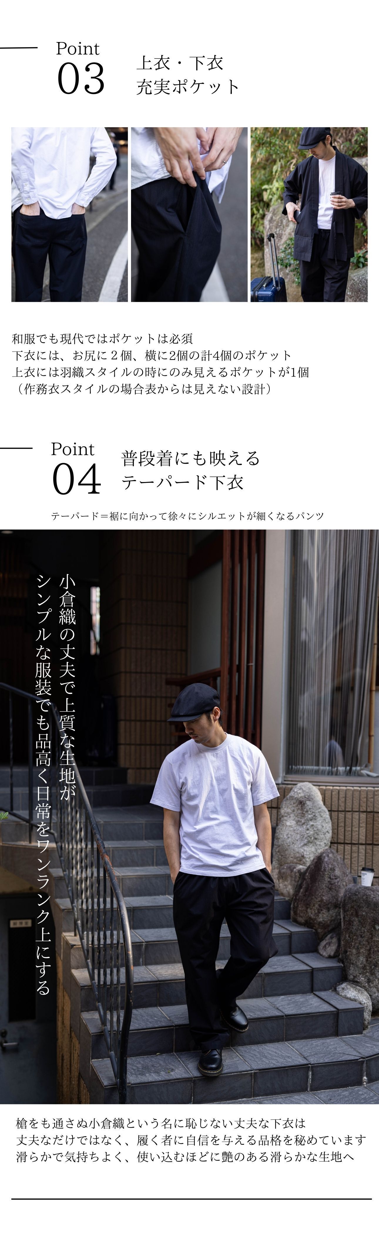 ⚫︎下衣は紐によるウエストのサイズ調整可能&通常の和服には無い、ファスナーを搭載しました。