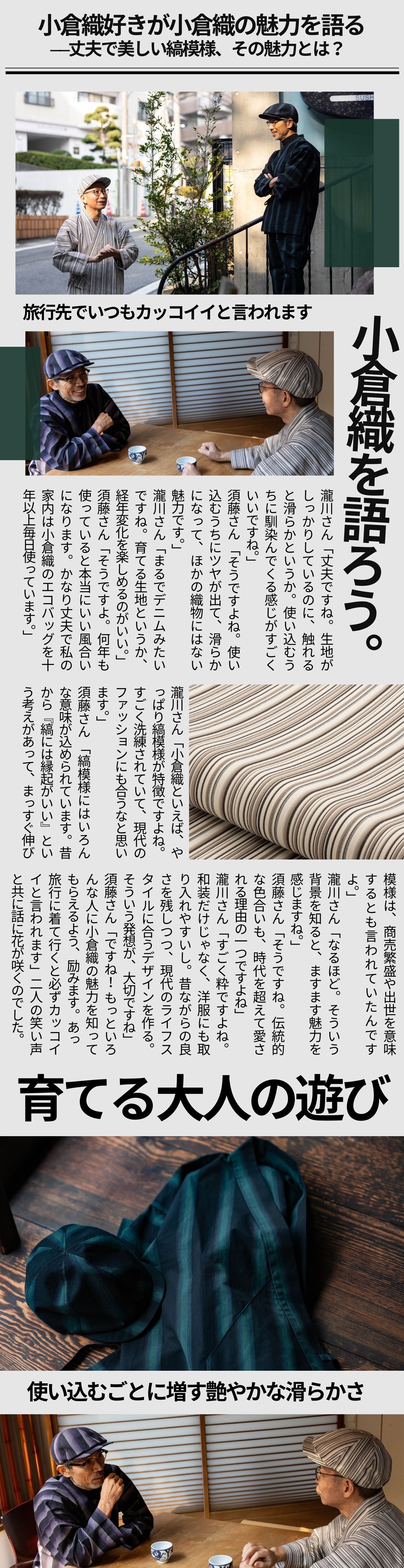 ↓小倉織ではないですが、漁網作務衣を今回は特別にご用意いたしました。