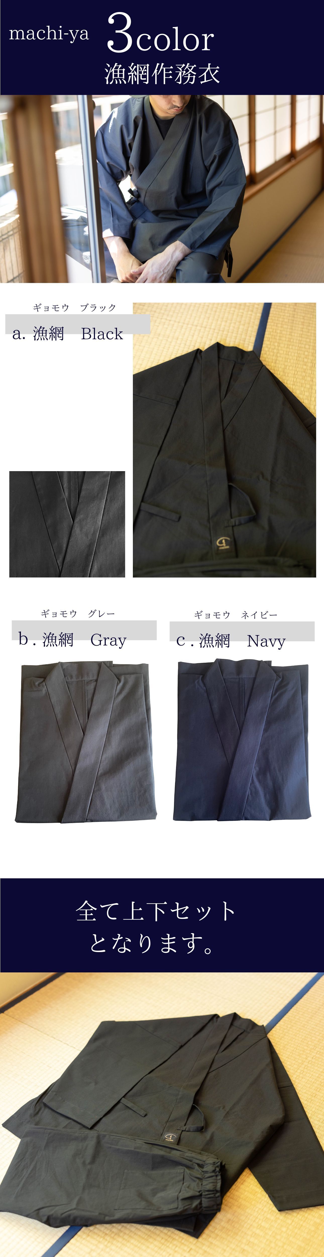 ⚫︎リサイクル漁網生地を使用した作務衣もご用意いたしました。