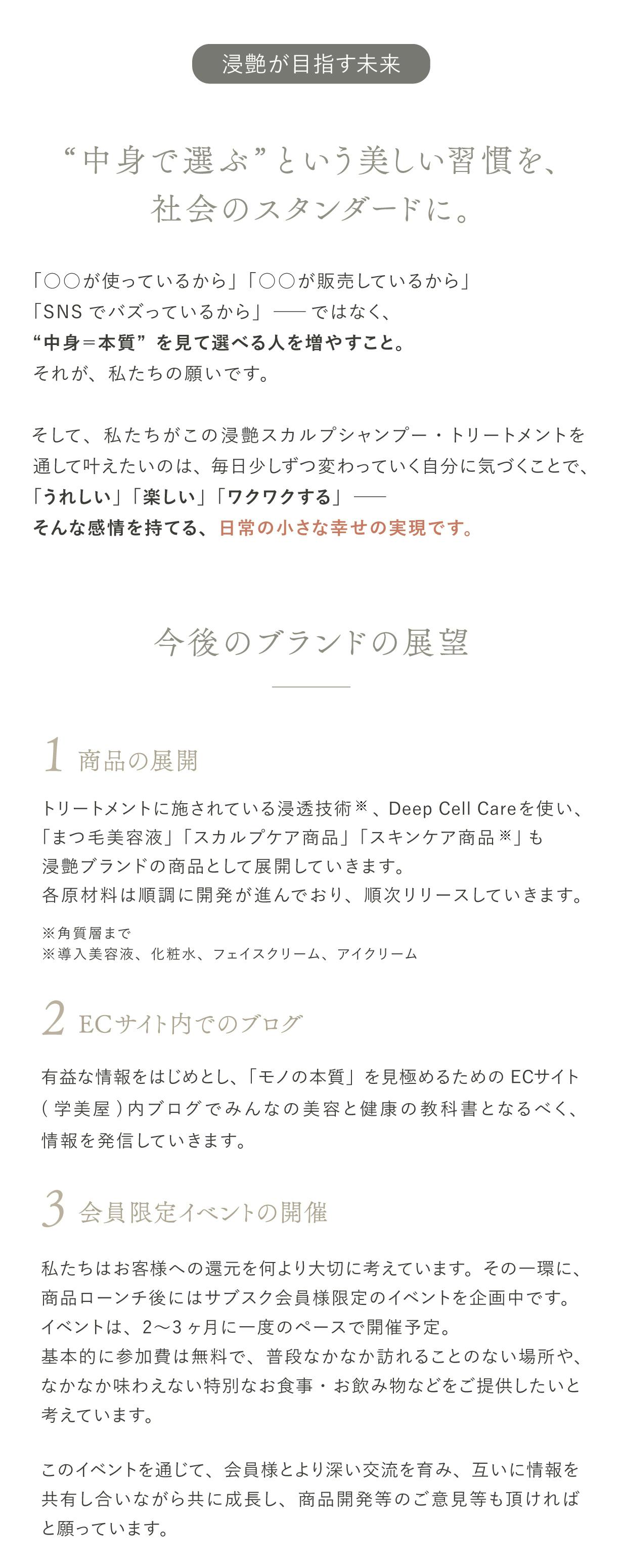 私たちは、美容と健康の分野において「本当に良いものだけを届ける」ことを使命とし、誕生しました。今、世の中には多くのコスメ商品が溢れていますが、成分や製造工程に妥協が見られるものも少なくありません。その中で、「人体にとって本当に安全で、なおかつ効果を最大限に引き出す製品」を追求した結果、私たちは“浸艶(しんえん)”というブランドを立ち上げました。
