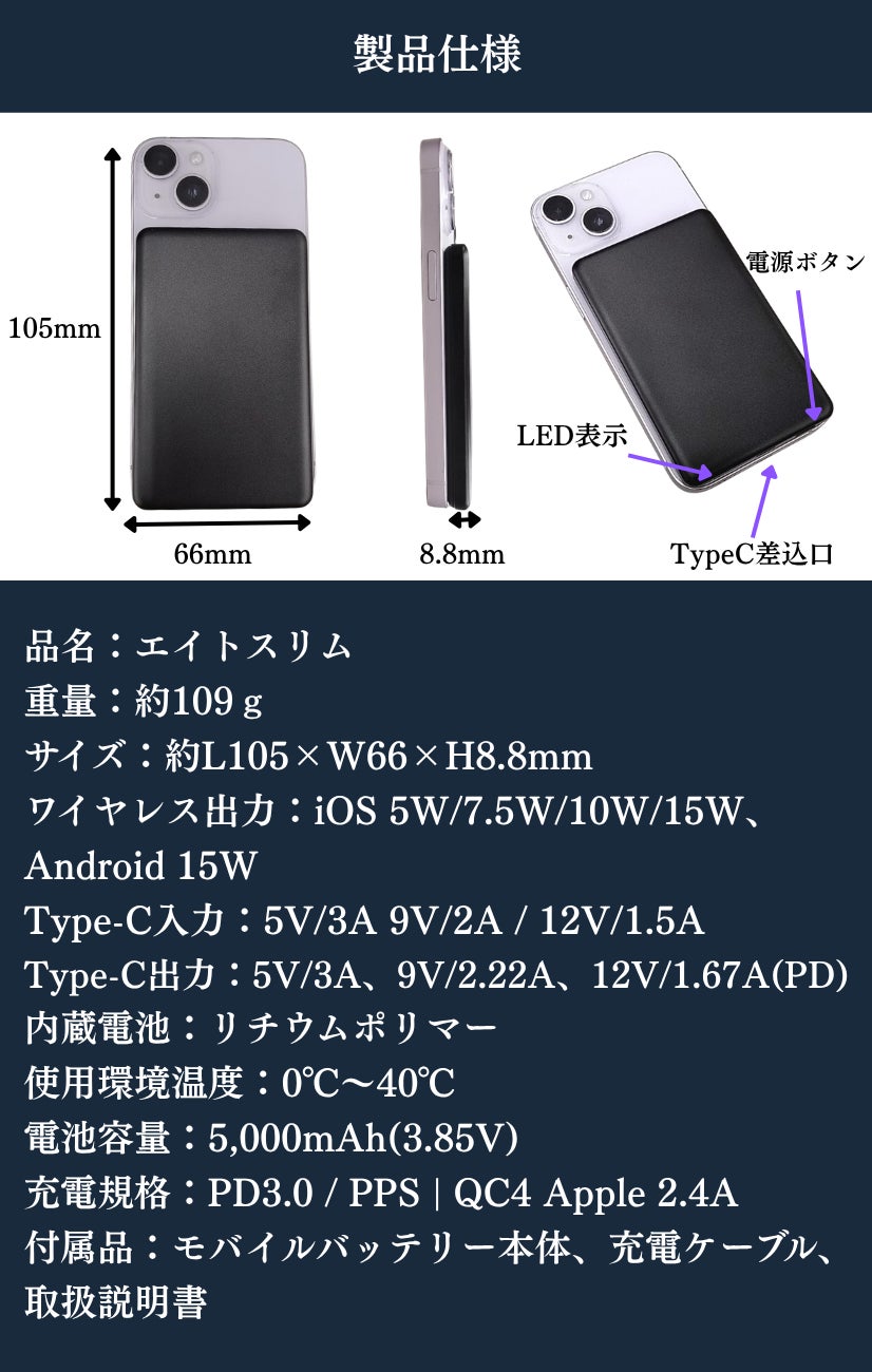 【爆速割】モバイルバッテリー本体1個 ・エイトスリム×1個 ・専用USBコード ・取扱説明書 一般発売予定価格:8,000円 割引価格:29%oFF 5,680円 (いずれも税込・送料込み) ※ 割引率は一般販売予定価格に送料を含む合計金額に対するものです。 ※PSEマーク(その他法定表示を含む)表示済み
