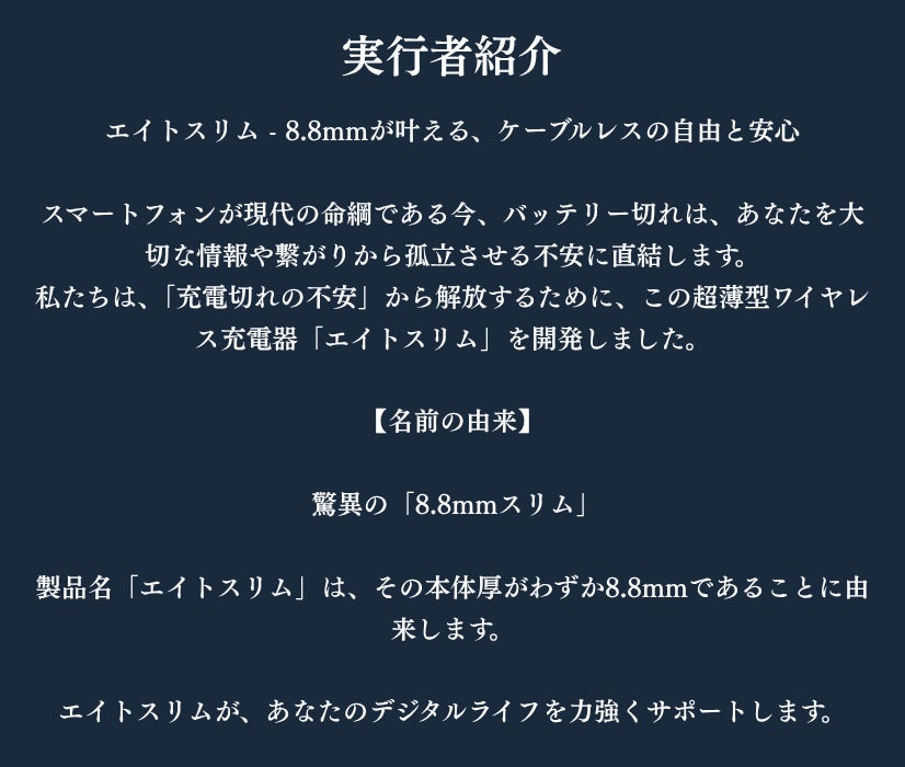 【早割】モバイルバッテリー本体1個 ・エイトスリム×1個 ・専用USBコード ・取扱説明書 一般発売予定価格:8,000円 割引価格:21%oFF 6,320円 (いずれも税込・送料込み) ※ 割引率は一般販売予定価格に送料を含む合計金額に対するものです。 ※PSEマーク(その他法定表示を含む)表示済み