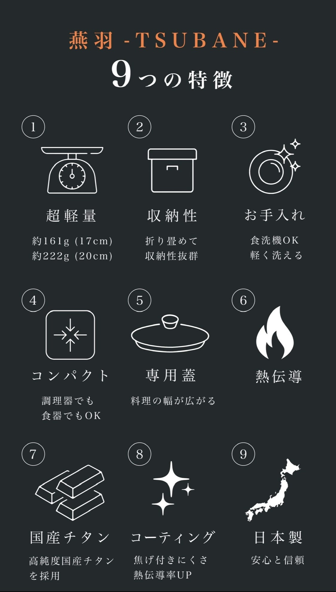 職人の技術を凝縮した究極のチタンフライパン【燕羽-TSUBANE】
