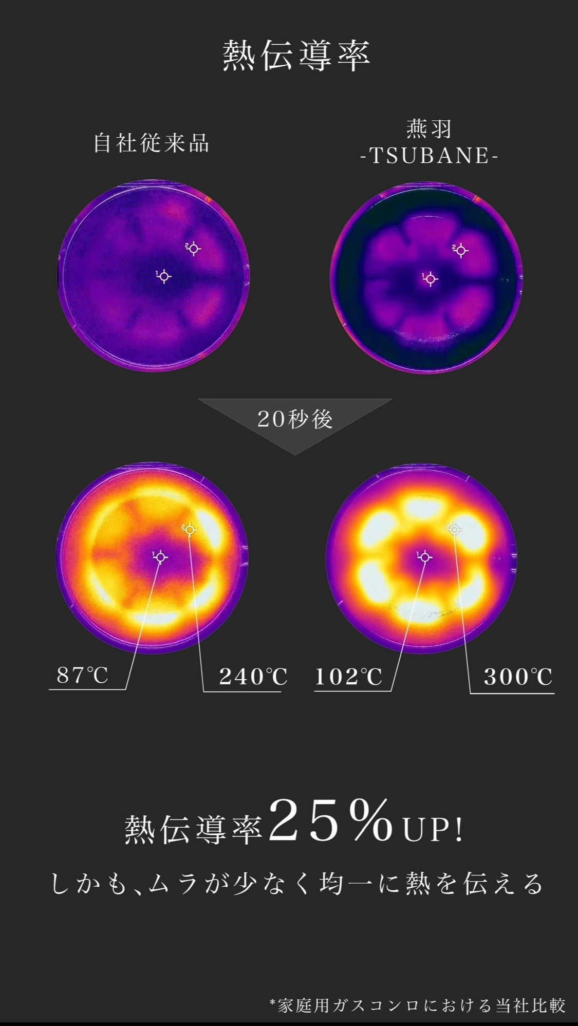 ※自社試験条件(200℃に予熱後、5分加熱)において、鍋底全体へ熱が広がる傾向が確認されました。