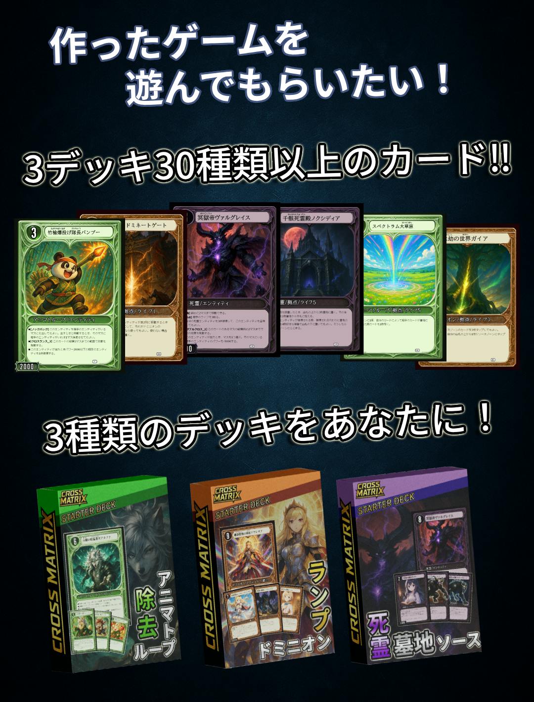 頭脳で戦う新感覚TCG『Cross Matrix』を、ぜひ体験してください。あなたの支援が、この作品を現実にする一歩になります。応援よろしくお願いいたします!