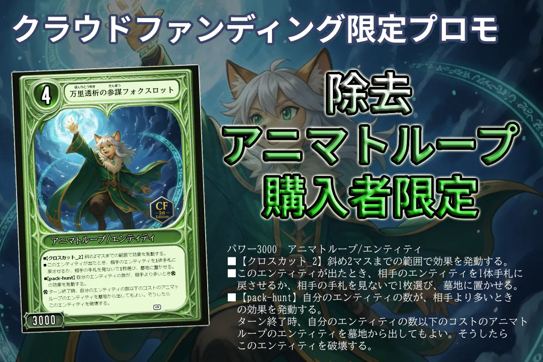 2025/12/04 10:55今、支援額が159600円を越えました。正直、ここまで来られるとは思っていなかったです。支援してくれた方、興味を持ってページを覗いてくれた方、本当にありがとうございます。このプロジェクトは「カードを作ること」が目的ではありません。遊べる世界を作ること。それが最初からのゴールでした。そこで、次のストレッチゴールを設定します。20万円達成で——公式オンライン体験会を開催します。Discordサーバーに専用チャンネルを開設ユドナリウムでのオンライン対戦会だれでも参加OK、製作者が直接レクチャー「届いたら終わり」じゃなく、届いたものを一緒に遊ぶ場所を作りたい。TCGは、箱にしまって眺めるだけのものじゃなく、誰かと対戦して初めて意味を持ちます。だからこそ、この作品を最速で遊べる環境をセットで届けたい。今はまだ、20万円という数字が遠く感じます。でもここまで来れたように、最後まで走り切れば届くかもしれない。もしこのプロジェクトを「面白そうだな」と思ってくれているなら、最後の後押しをしてくれると嬉しいです。クラファン終了まで、あと少し。最後まで走ります。 もっと見る