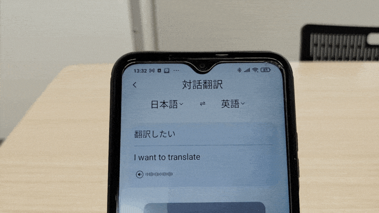 スマホのマイクとスピーカーを使って会話できる、双方向の音声翻訳機能です。
