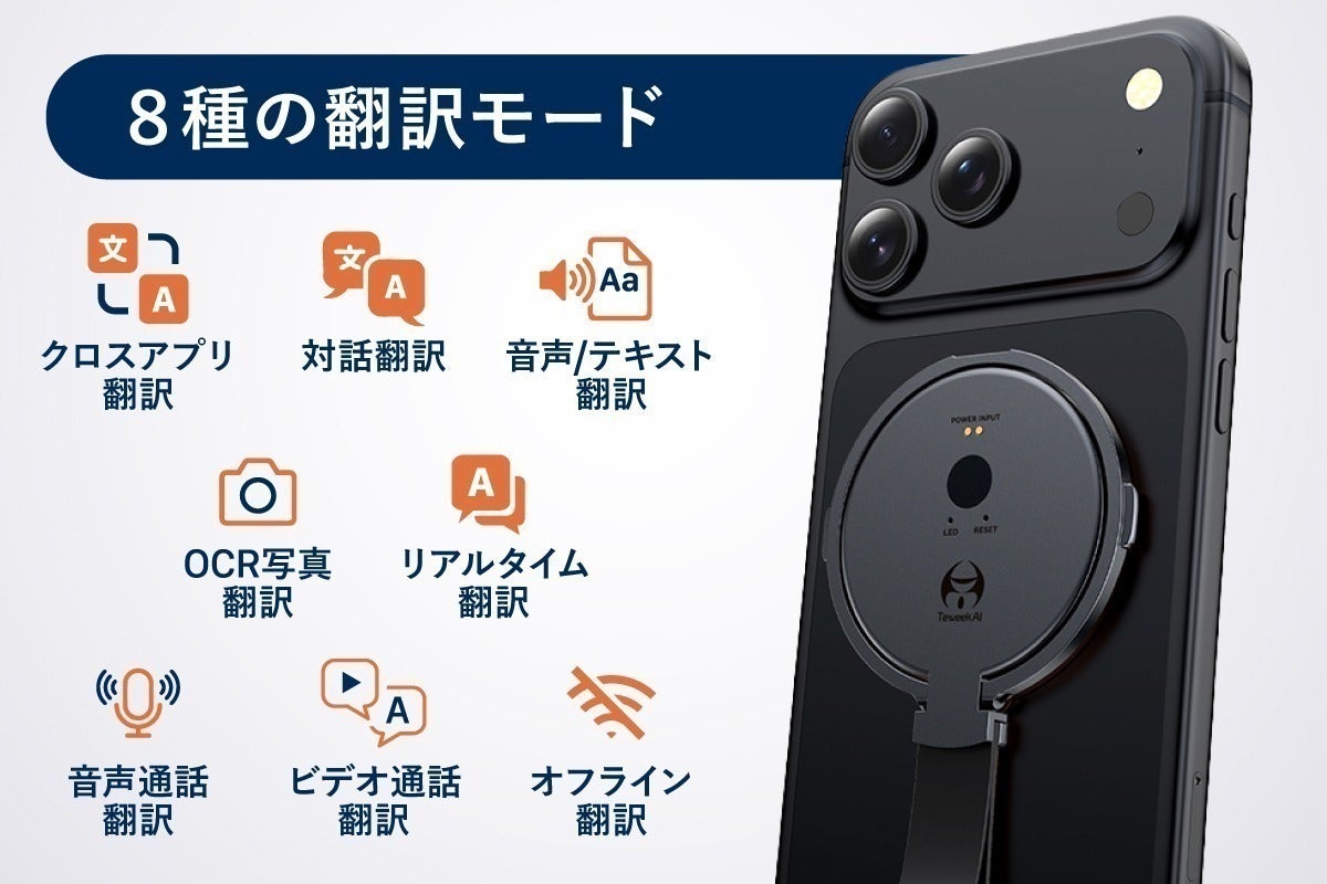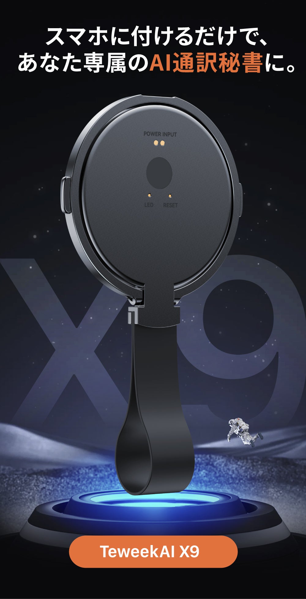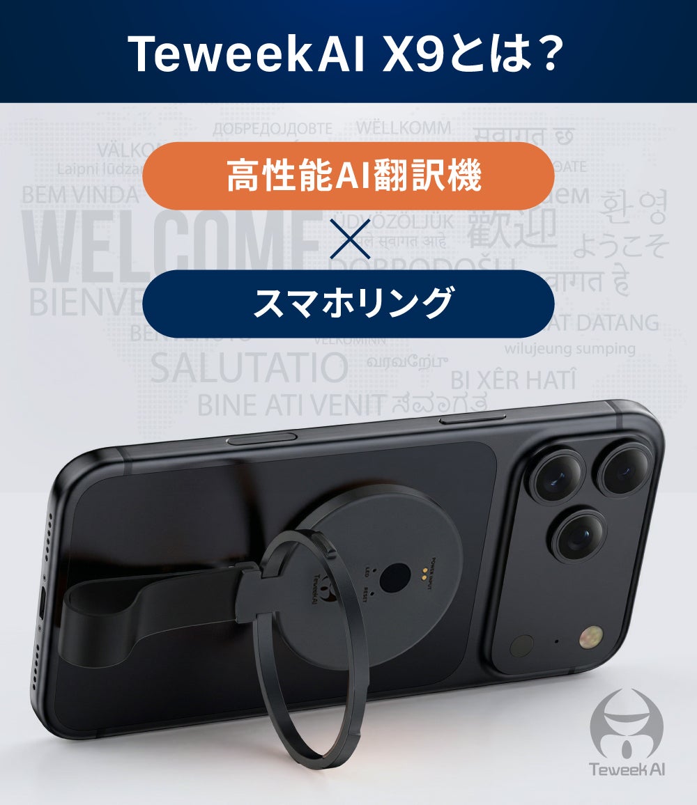 TeweekAI X9(以下、X9)は、言語の異なる相手とのコミュニケーションをスムーズにするスマホリング型AI翻訳機です。