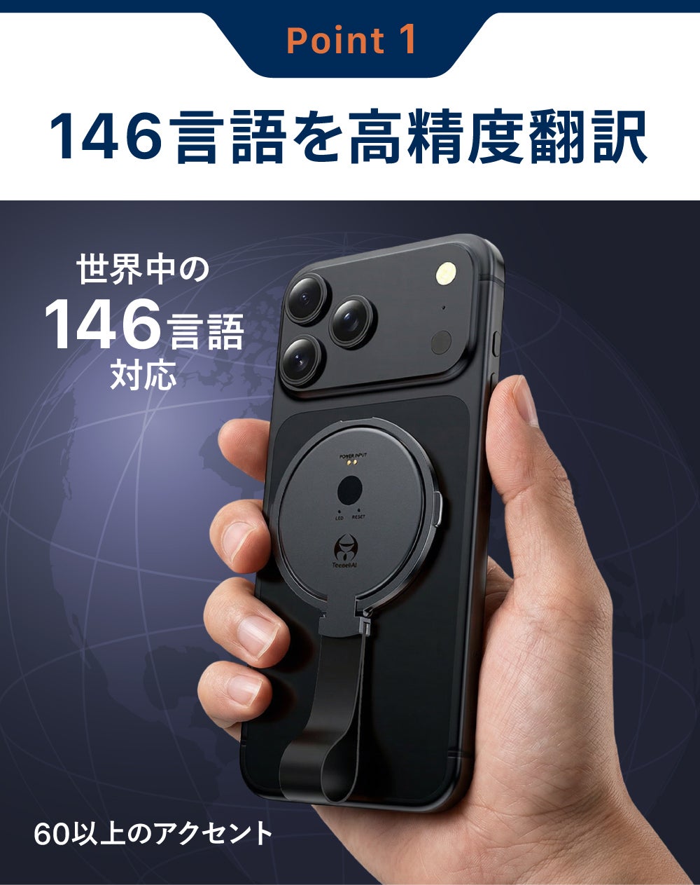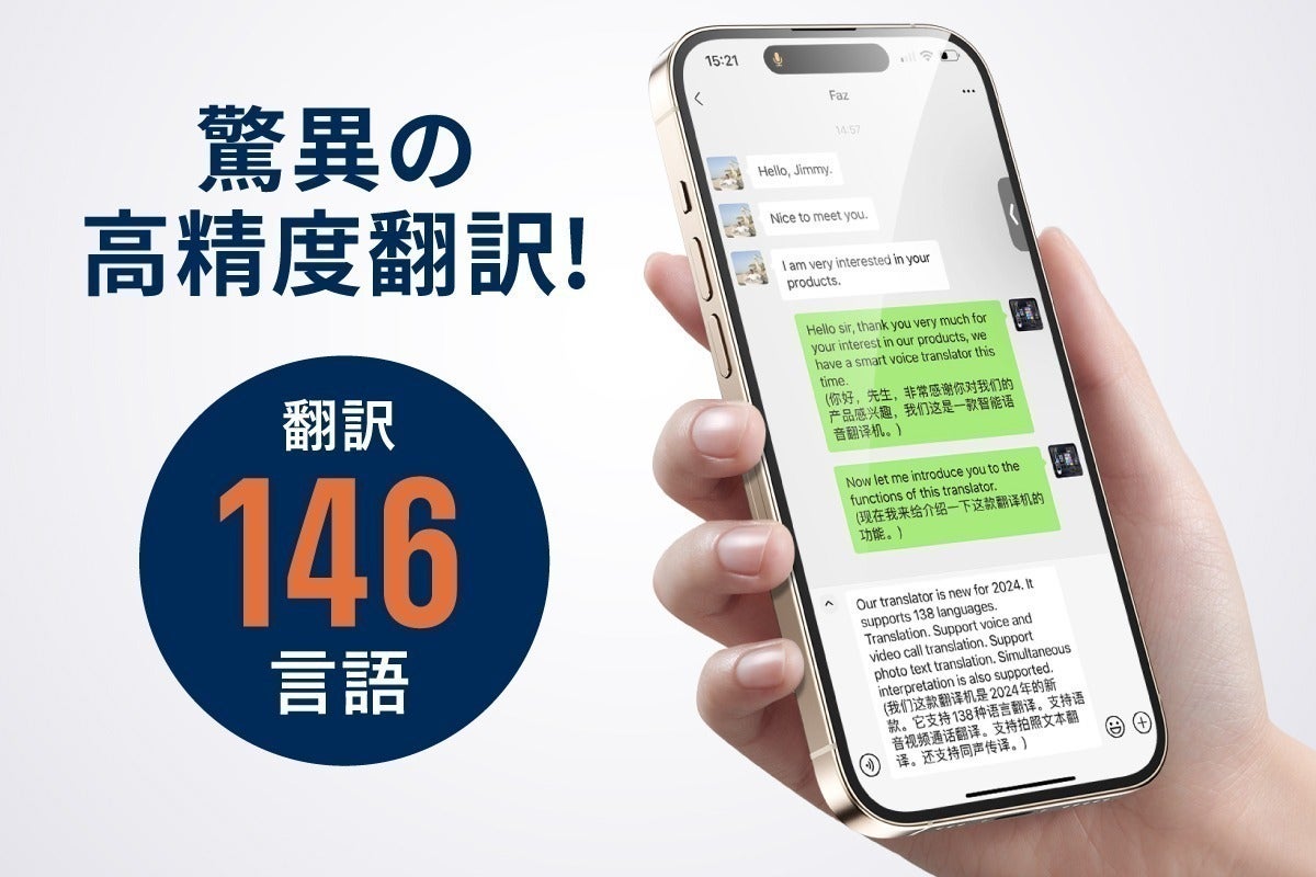 最大146言語に対応し、会話内容を瞬時に翻訳。海外旅行やビジネスシーンでも、言葉の壁を感じることなく自然なコミュニケーションを実現。