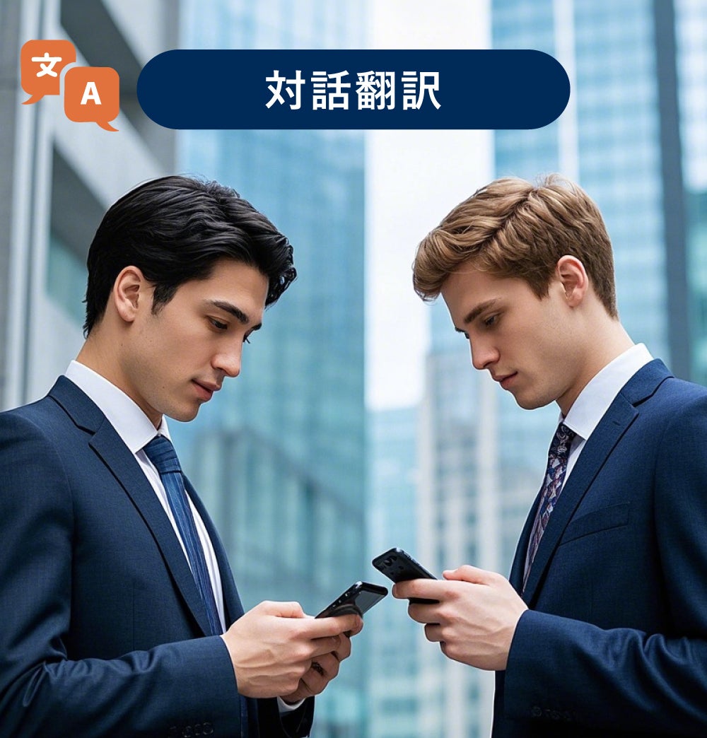 相手の話している音声をリアルタイムで翻訳し、音声とテキストの両方で表示する同時通訳型の翻訳機能です。