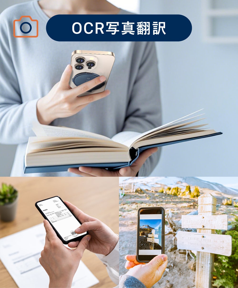 OCR(光学文字認識)技術を活用した翻訳機能で、カメラで撮影した画像内の文字を読み取り、そのまま翻訳できます。