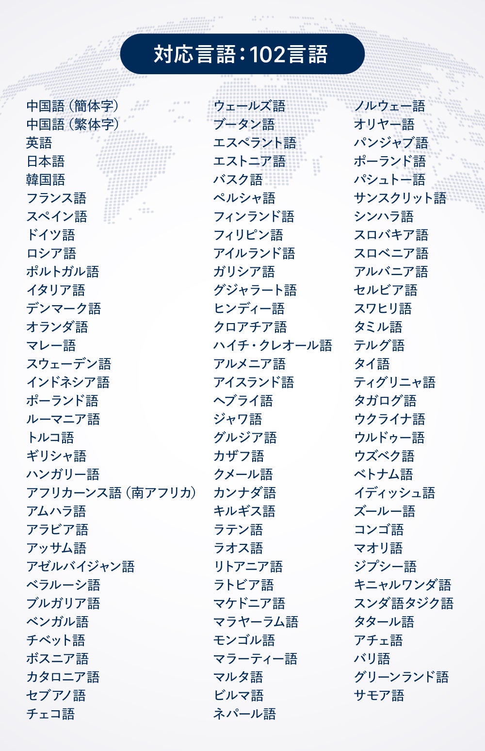世界中で使われている多くの言語に対応しており、海外のさまざまな国や地域の人々と意思疎通がしやすくなります。
