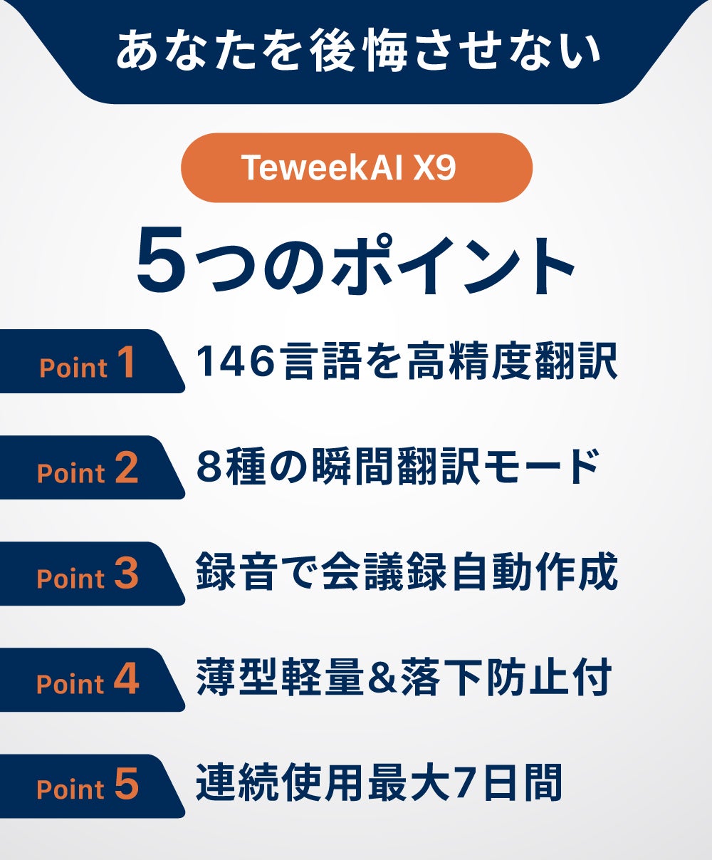 メーカーが独自に開発した音声認識エンジンとAI翻訳機能を掛け合わせているので、X9は翻訳速度も抜群です。