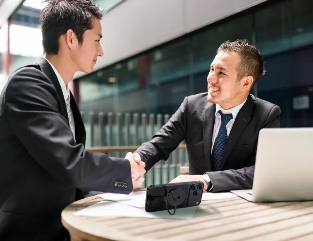 ストラップ搭載で、移動中や商談中のうっかり落下をしっかり防止。