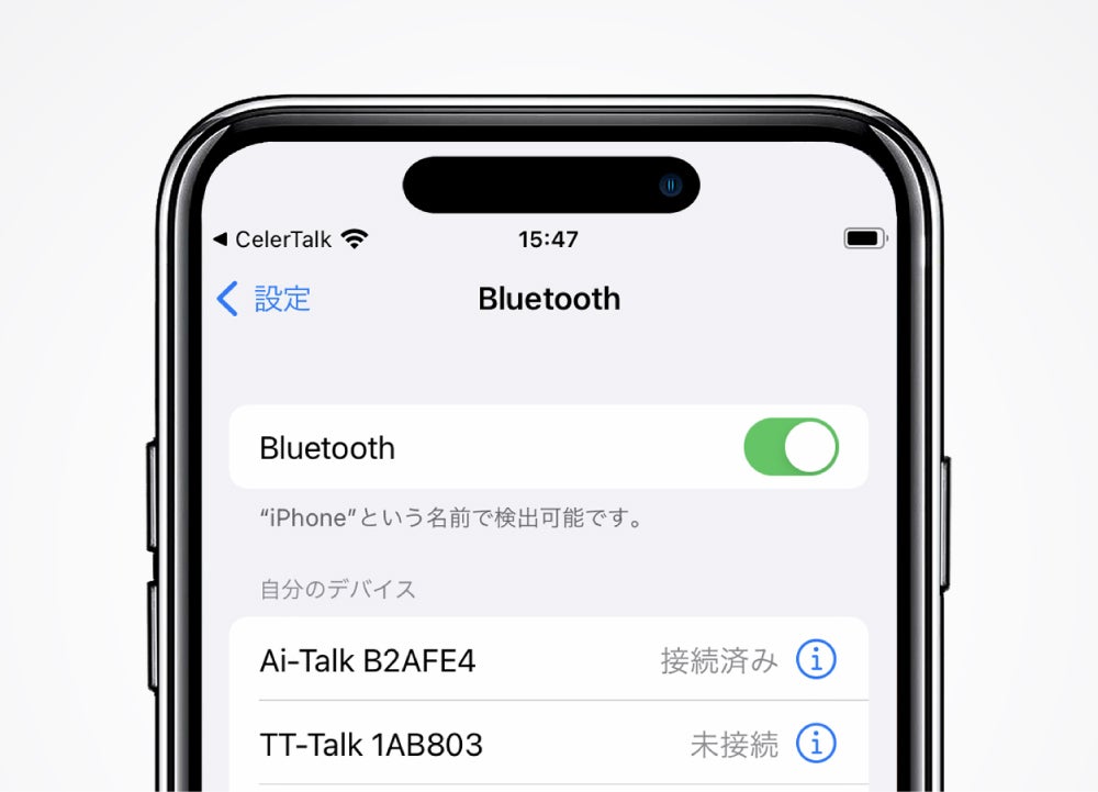 4. スマホのBluetooth設定画面でBluetoothを有効にして、「Ai-Talk」を選択してペアリング(接続)してください。