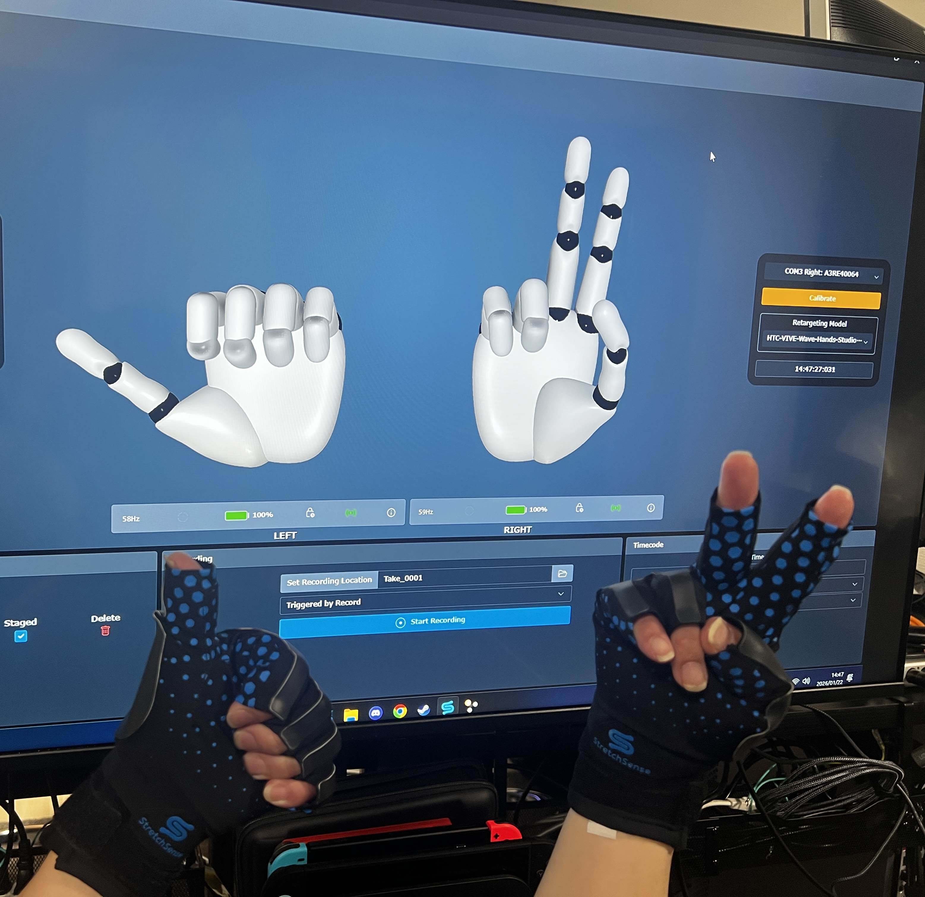 手のモーション収録に関しては、Strech Senseを1セット導入!