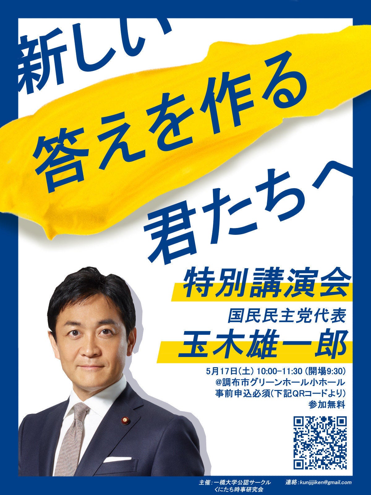 私たちは「くにたち時事研究会」という学生団体です!本部を一橋大学においており、昨年の6月に発足した新しい団体ですがメンバーは一橋大学の学生を中心に既に46名が所属しております。「不偏不党」「政治経済をもっと気軽に、もっと近くに」をモットーにしています。定期的に勉強会を開催しており、既に国内政治・国際政治・政治思想・外国為替など幅広いテーマで勉強・議論を行っています。また、今年の5月には国民民主党・玉木雄一郎代表を講師に迎えた講演会を、一橋祭では慶応義塾大学大学院教授の岸博幸氏をお呼びし講演会を開催いたしますが、このような催しも定期的に開催し、学生や地域の皆様に政治・経済をより身近に感じていただける機会を提供します。
