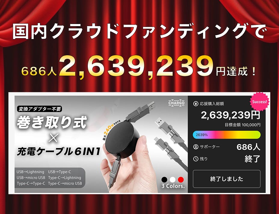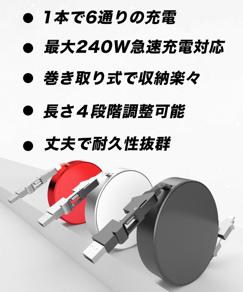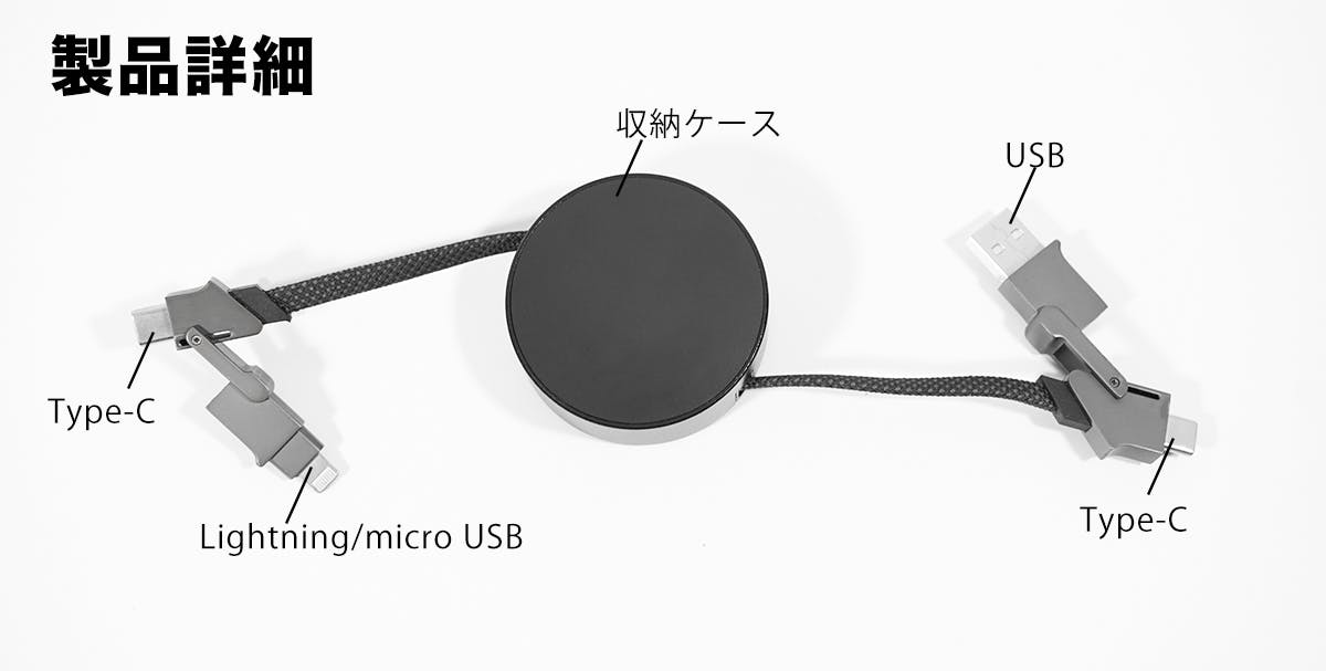 製品品番:「CHARGO」巻き取り式6in1充電ケーブル