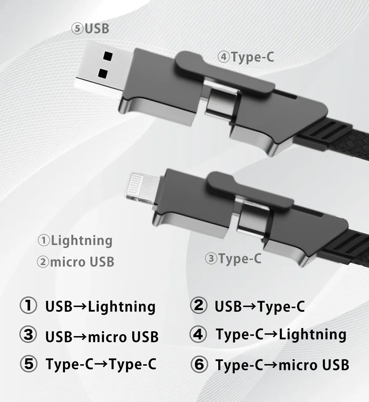 「CHARGO」巻き取り式6in1充電ケーブルが1本あれば、複数のケーブルを持ち歩く必要はありません。Apple Lightning、Type-C、Micro USBに対応し、スマートフォン、ノートPC、ゲーム機など、さまざまなデバイスの充電とデータ転送がこれ1本で完結。アダプター交換の必要もなく、紛失の心配もありません。外出先やアウトドアでケーブルを忘れても、「CHARGO」があればほとんどのデバイスをすぐに充電でき、急なバッテリー切れにも快適です。