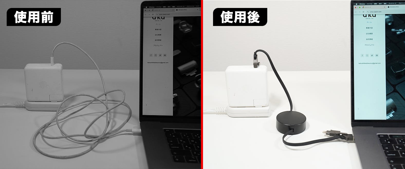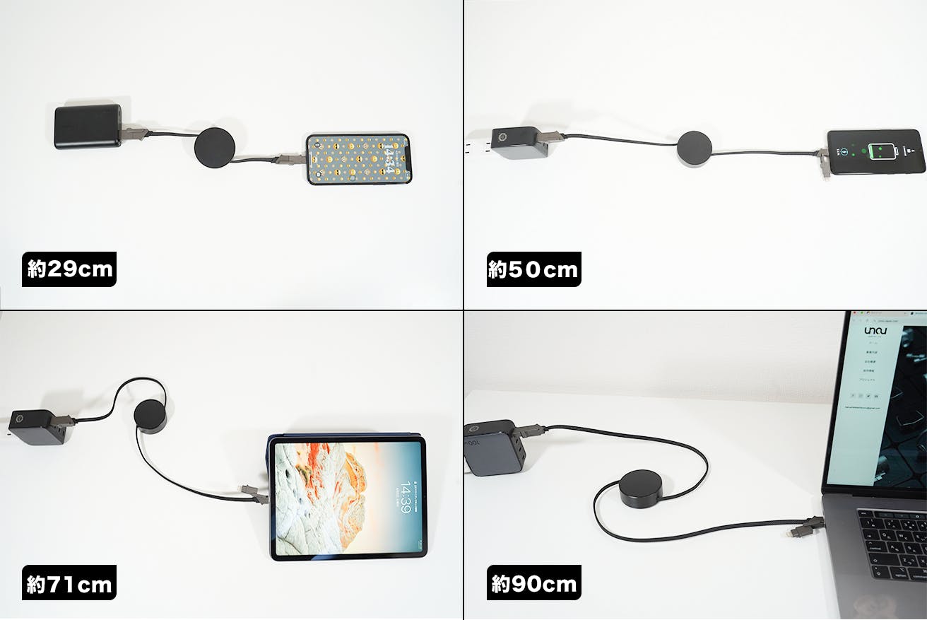 巻き取り式デザインで、必要な長さに合わせて調整し、ケーブルが絡み合わないように保つことができます。充電スペースを整頓し、取り回しをスムーズにします。