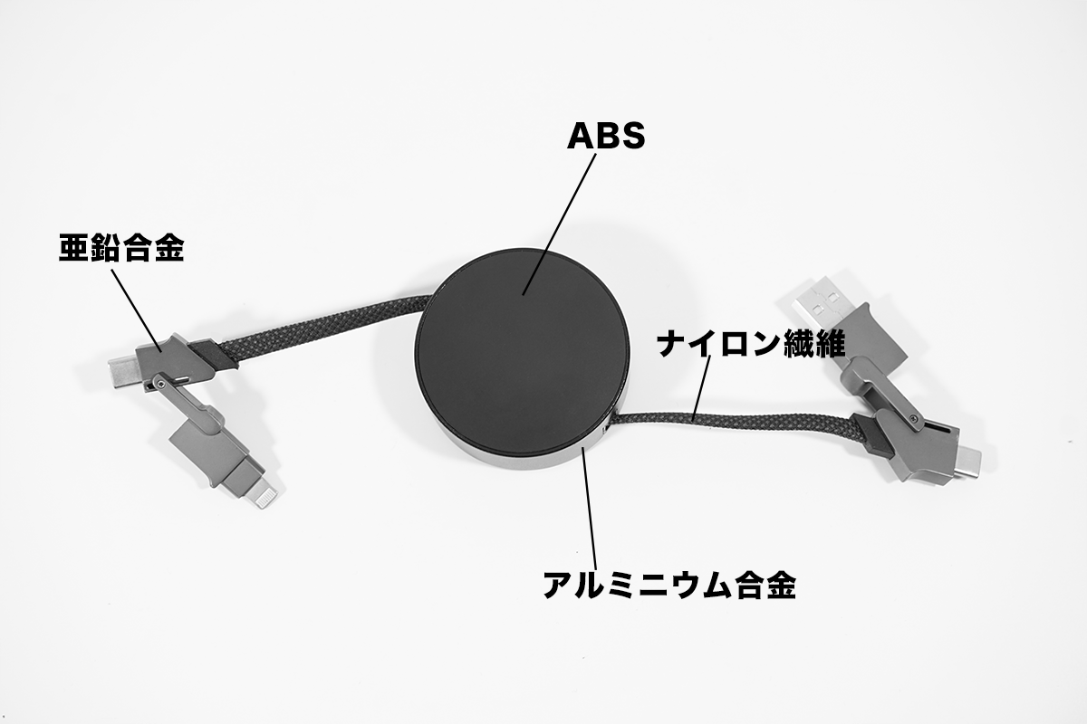 素材:亜鉛合金、ナイロン繊維編組、ABS、アルミニウム合金