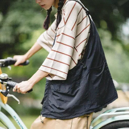 まるでベストのように体にフィットして、荷物をしっかり収納。両手が空くから、自転車も買い物も身軽にこなせます。