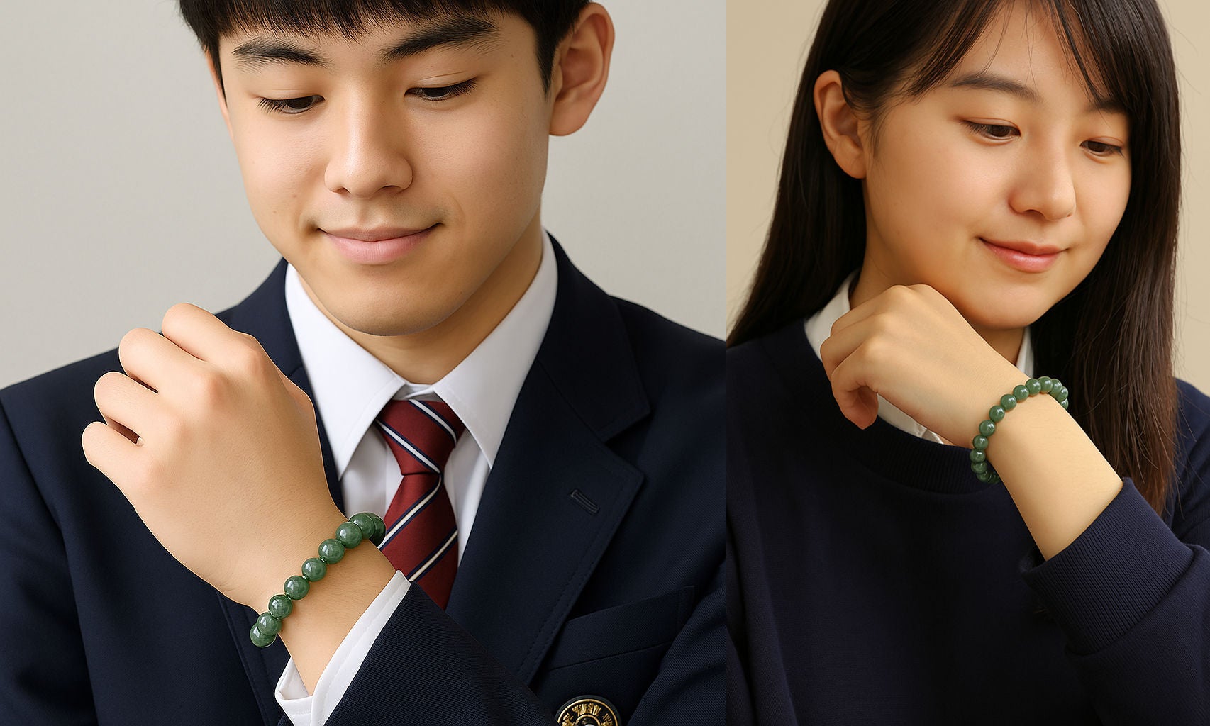 勉強や部活、将来に向けて頑張る学生さんにぴったりの翡翠ブレスレット。