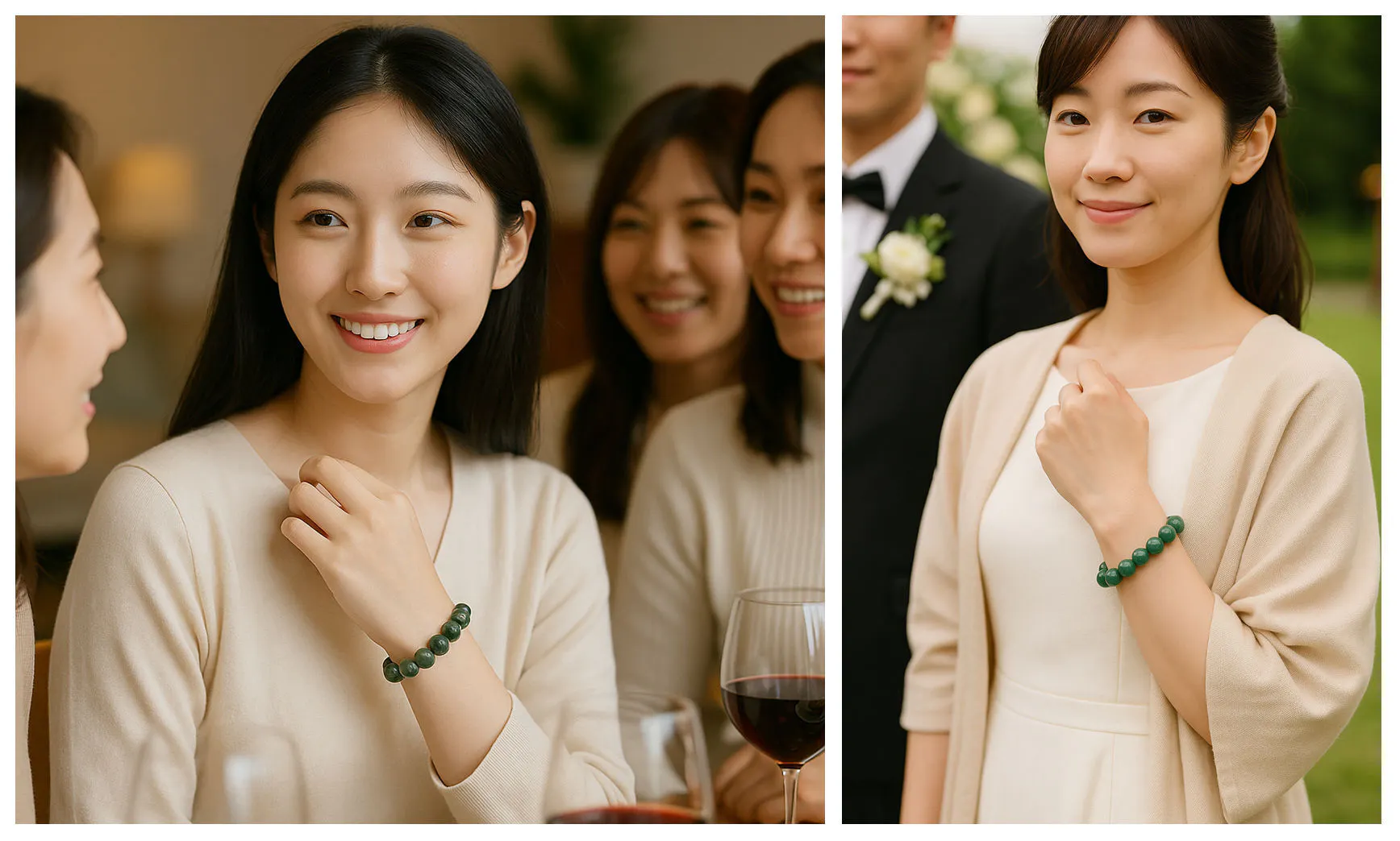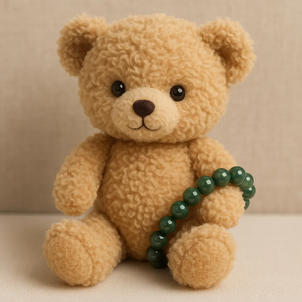 大切なぬいぐるみに翡翠ブレスレットをつければ、まるで“お守り”のように日々を優しく包んでくれます。
